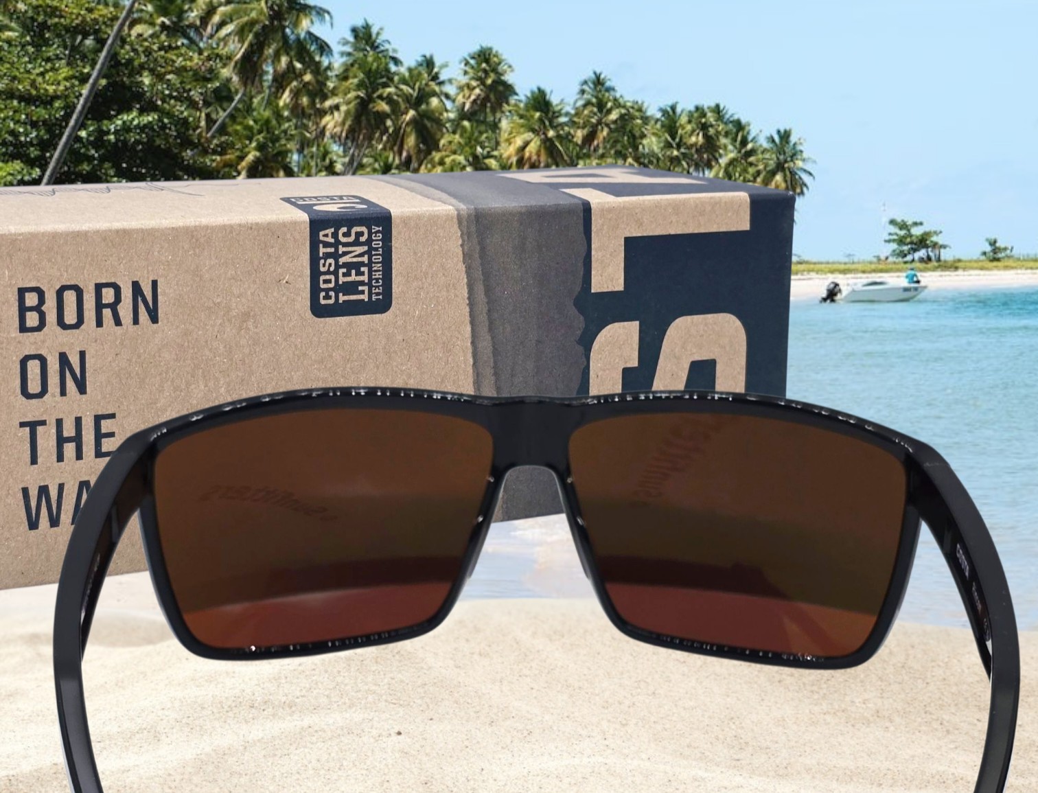 COSTA DEL MAR shiny black/green mirror RINCON polarized 580P sunglasses NEW