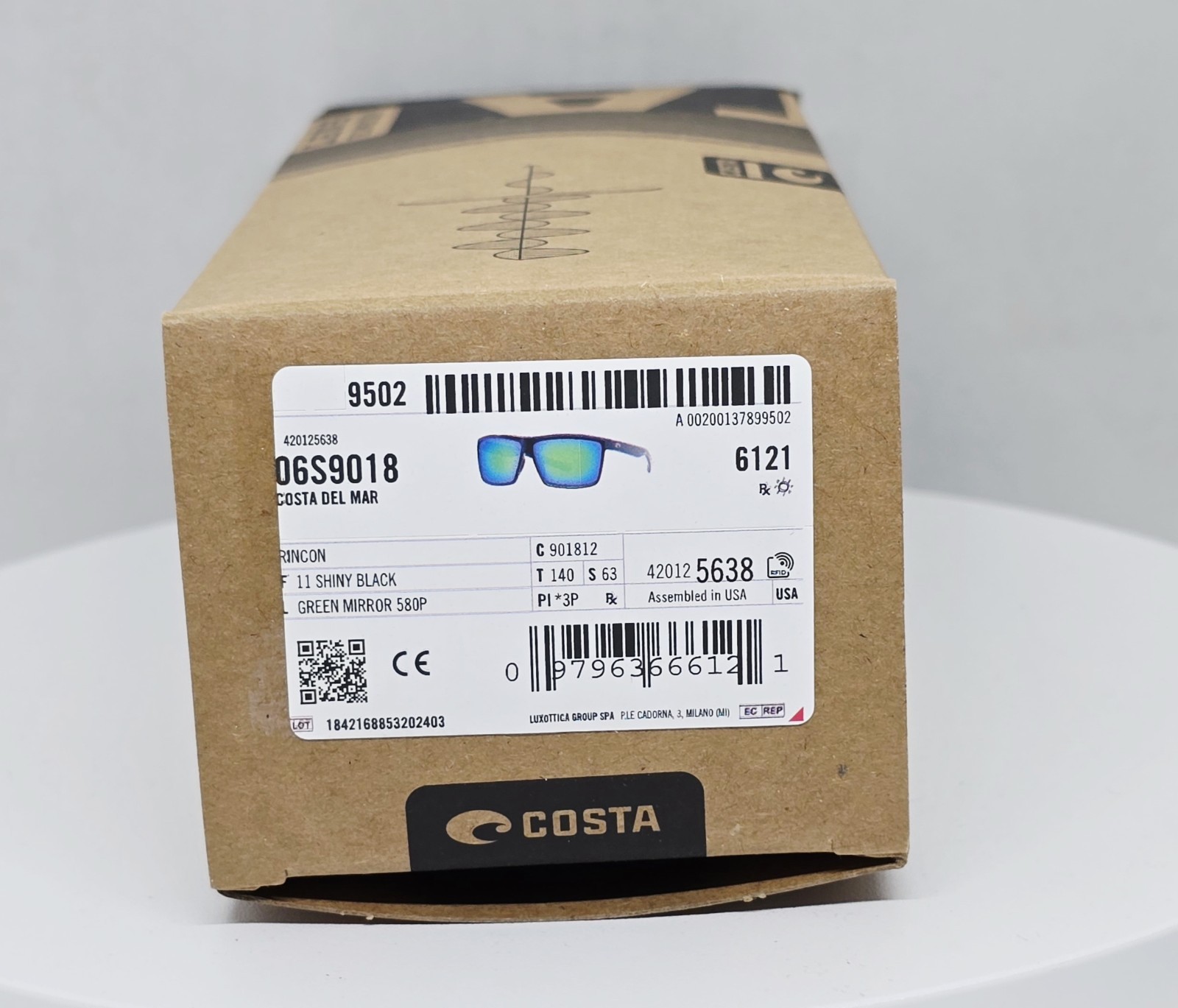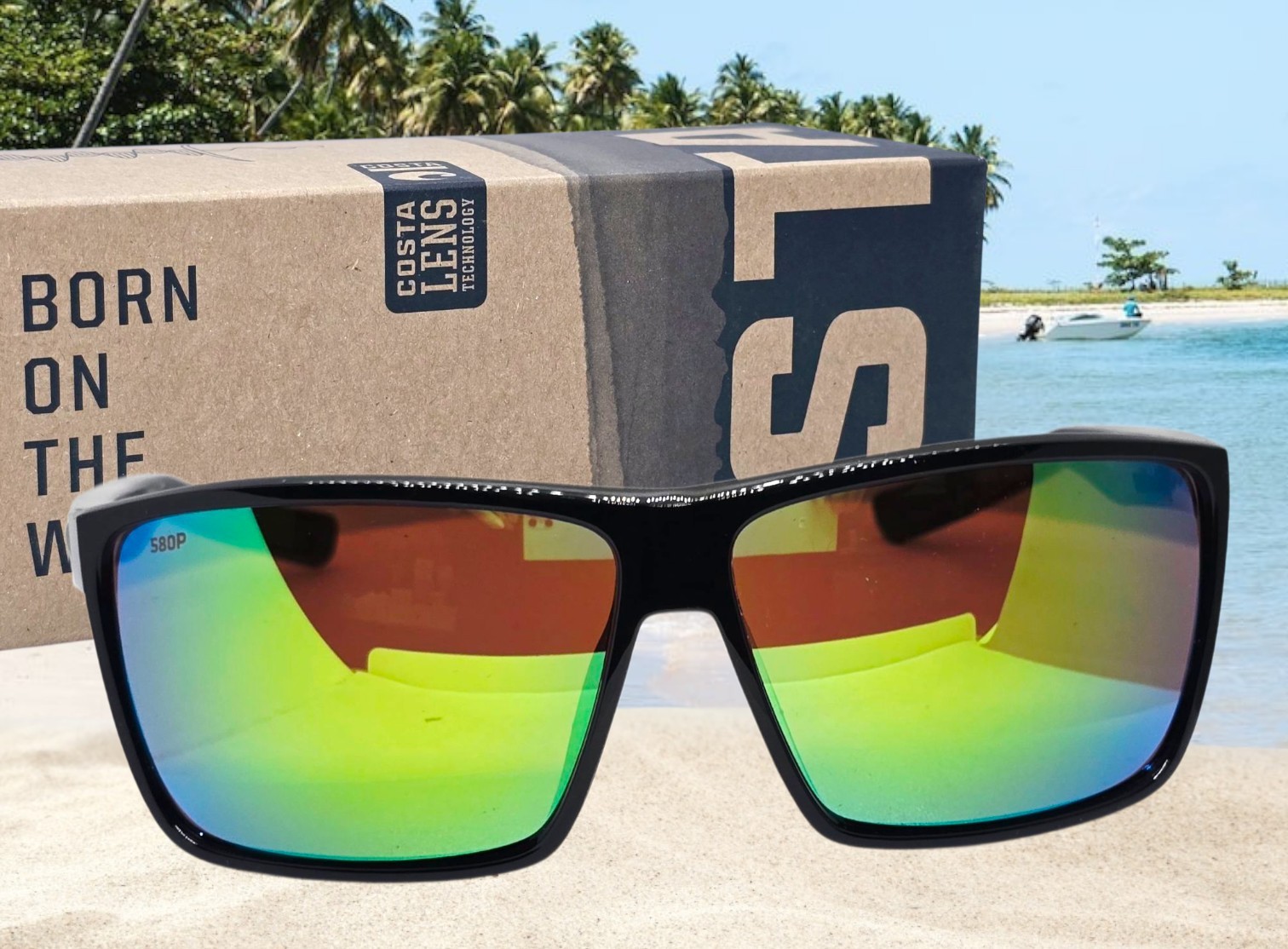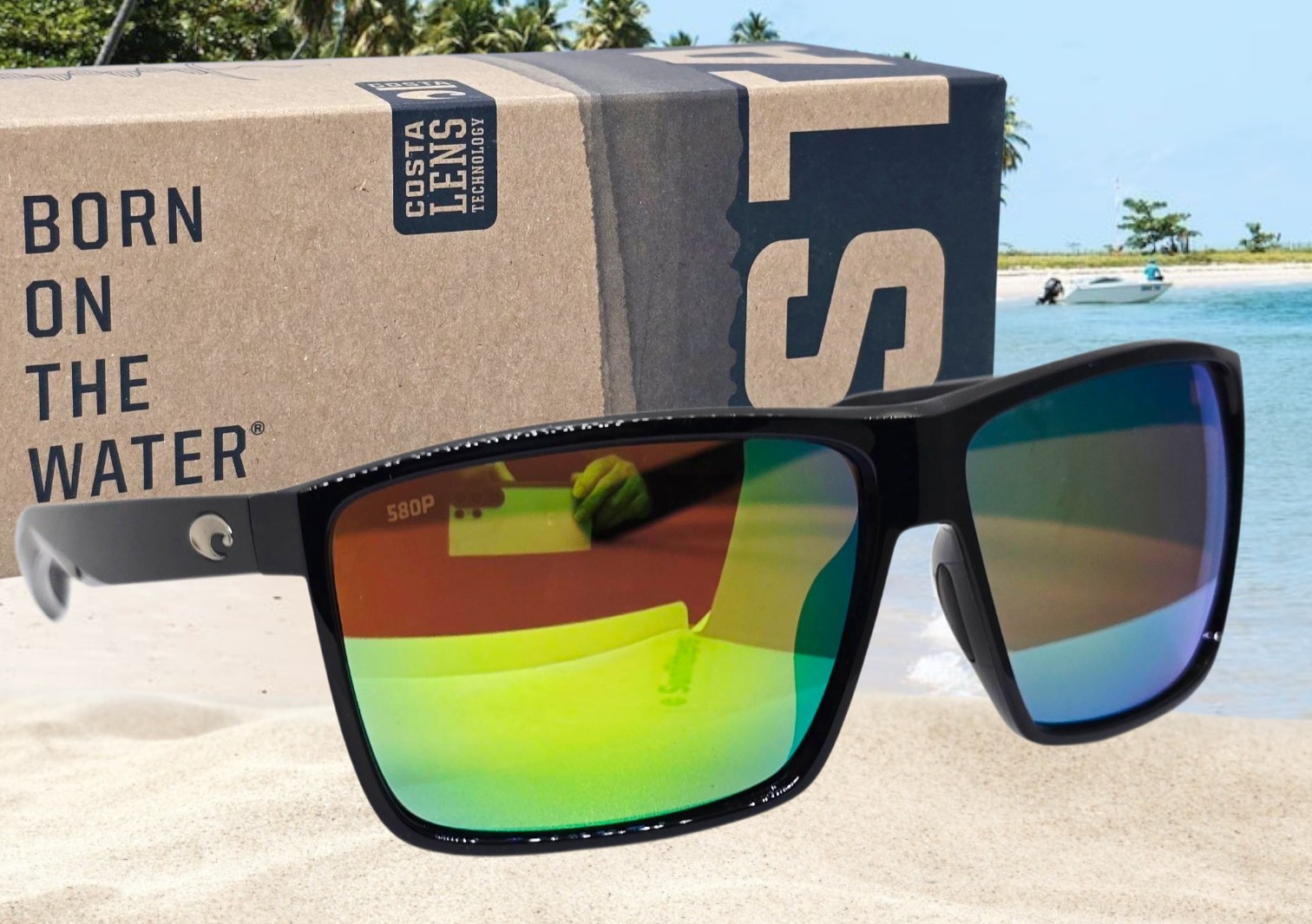 как выглядит COSTA DEL MAR shiny black/green mirror RINCON polarized 580P sunglasses NEW фото