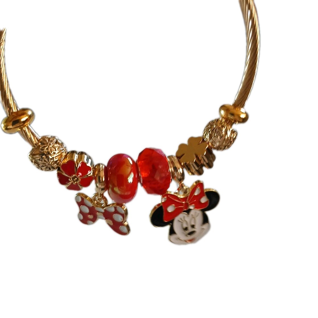 как выглядит Disneys Minnie Mouse 8 charm Goldtone Stretch Style Bangled Bracelet. New. фото