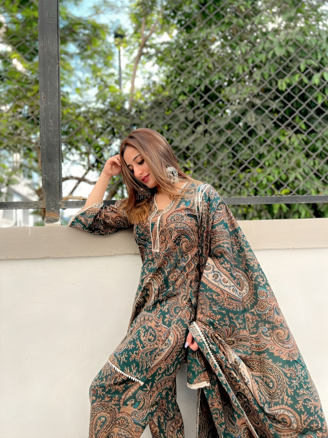 Paisley Print Palazzo Suit Set For Women Traditional Ethnic Wear
