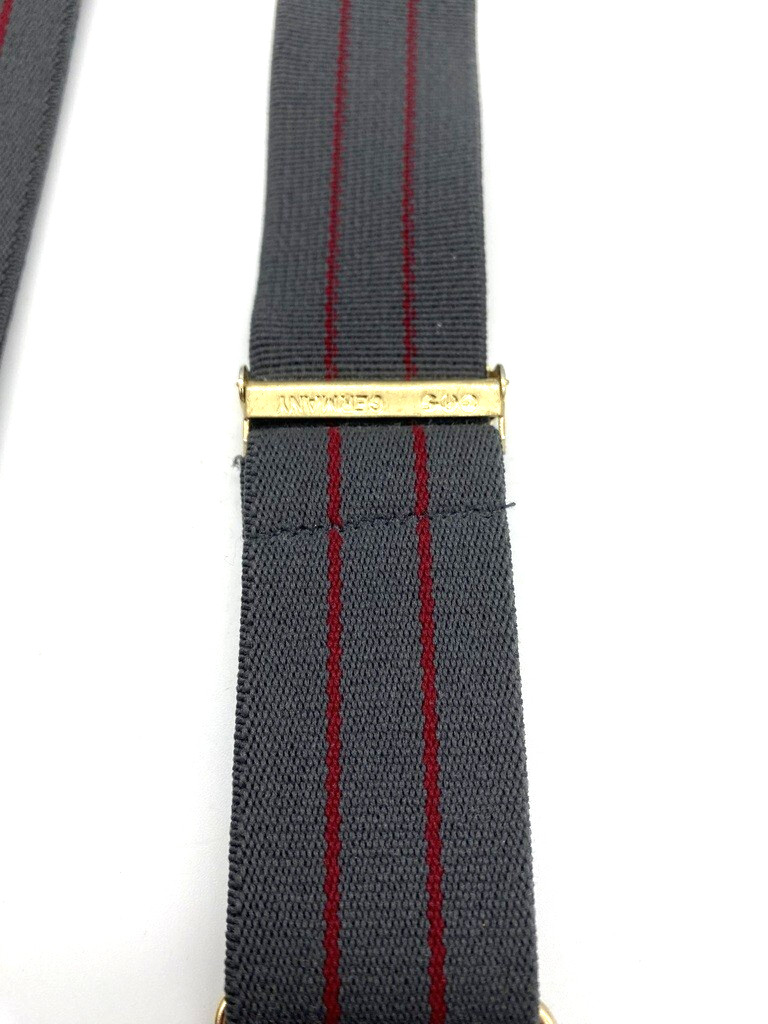 CAS Men's Braces Suspenders Gray Wine Stripe Elastic Leather Clasp Button Tips