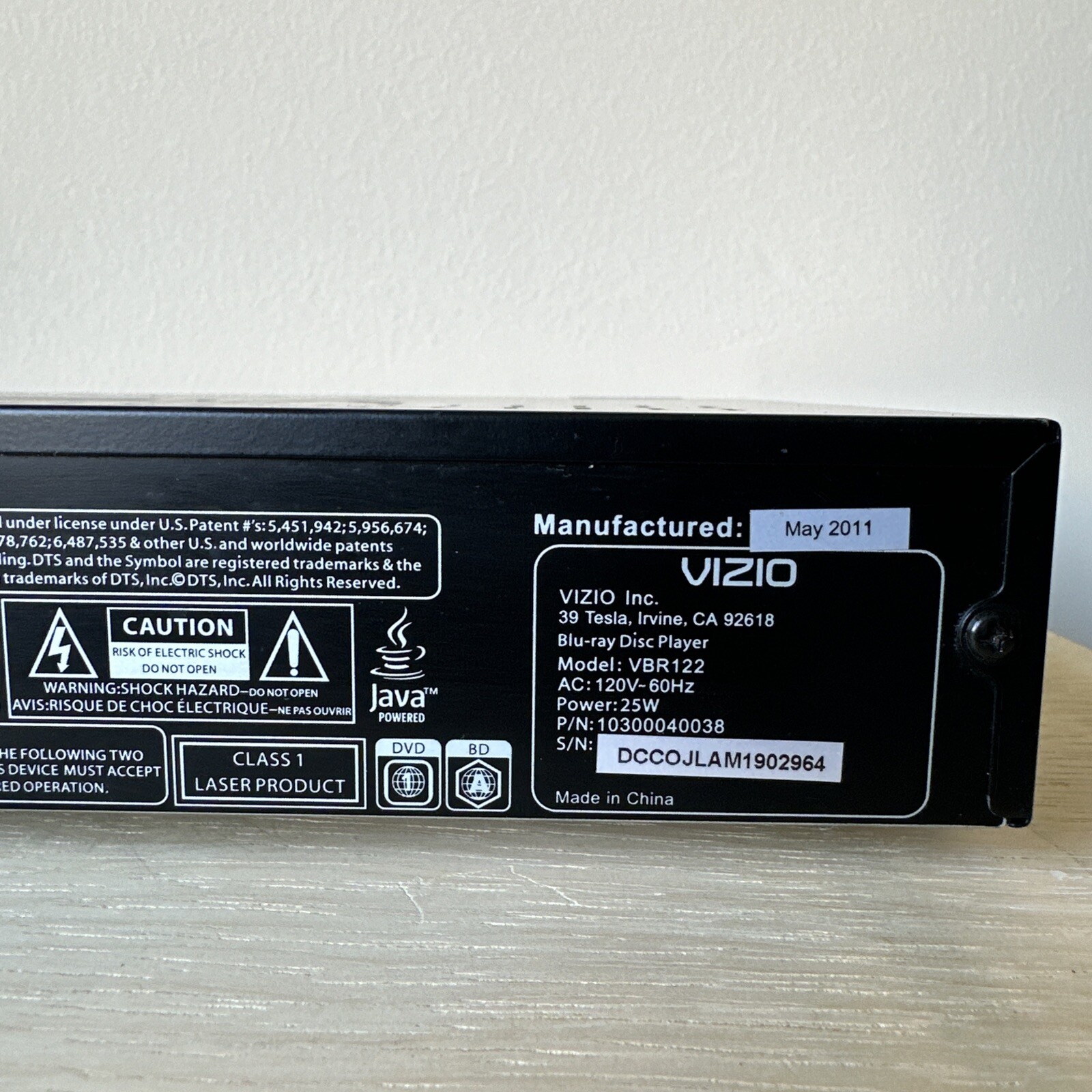 Vizio Blu Ray Disc Player Wifi Model VBR122 HDMI Cable Tested Works