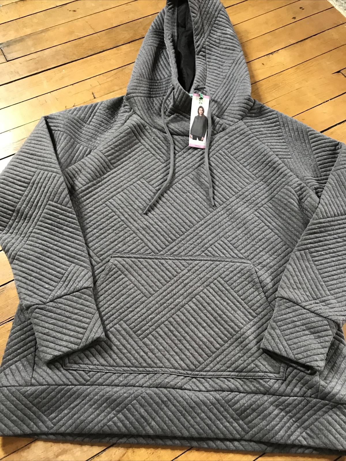NWT Green Tea Women's Charcoal Gray Quilted Pullover Hoodie S