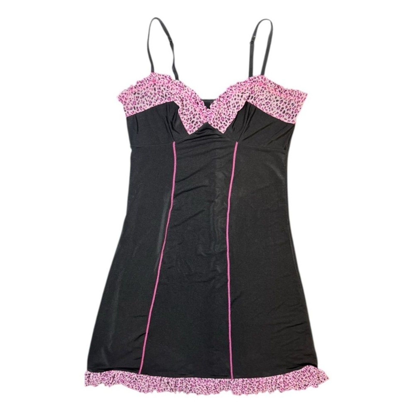 как выглядит Y2K Victoria s Secret Black Pink Cheetah Print Slip Dress Size Large фото