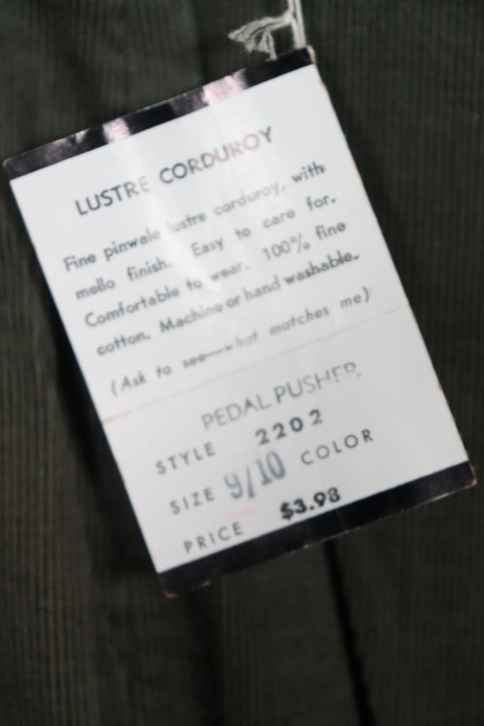 как выглядит Vintage 1960s Deadstock Unworn Green Cotton Corduroy Pedal Pushers 25" Waist фото