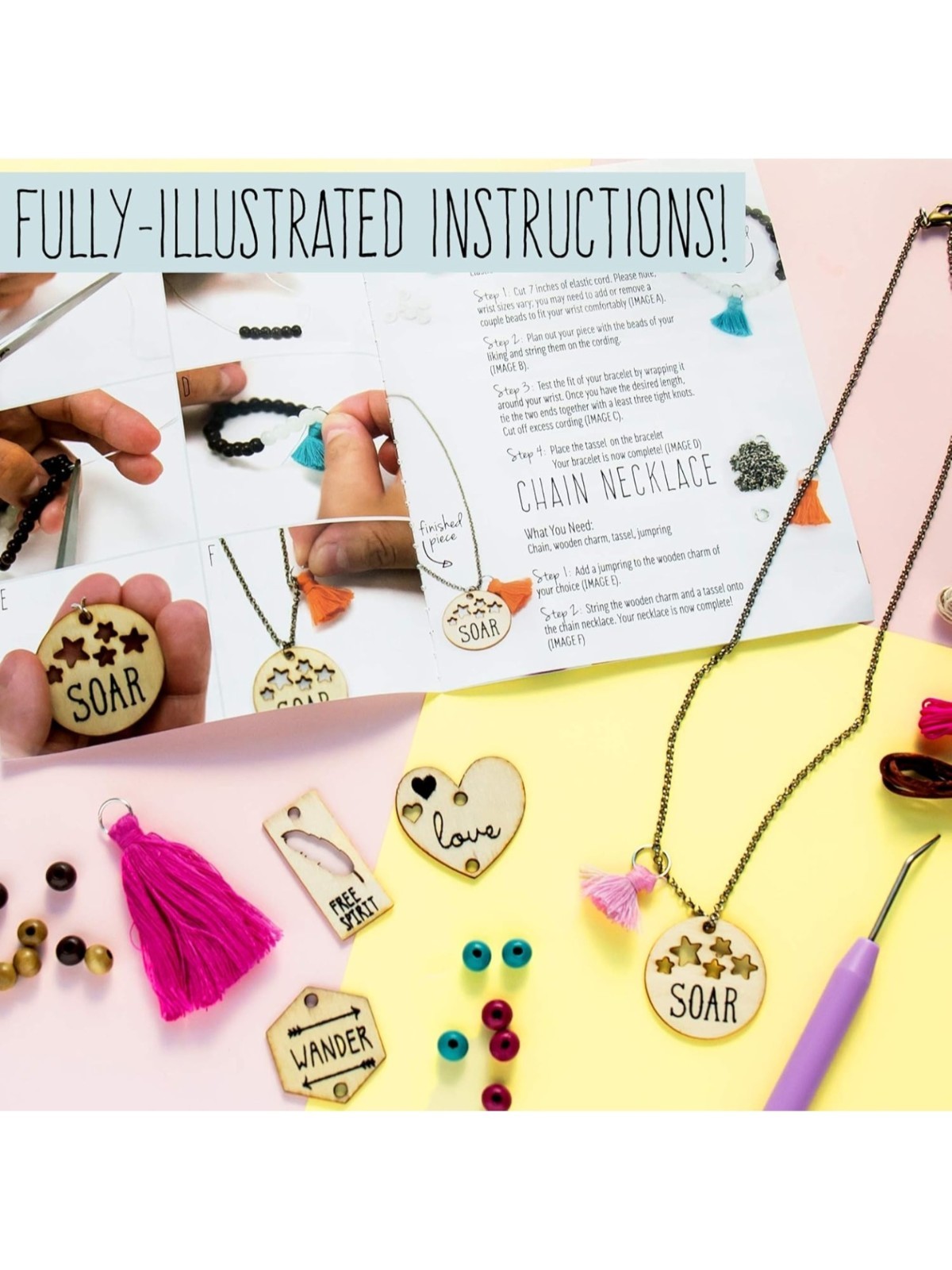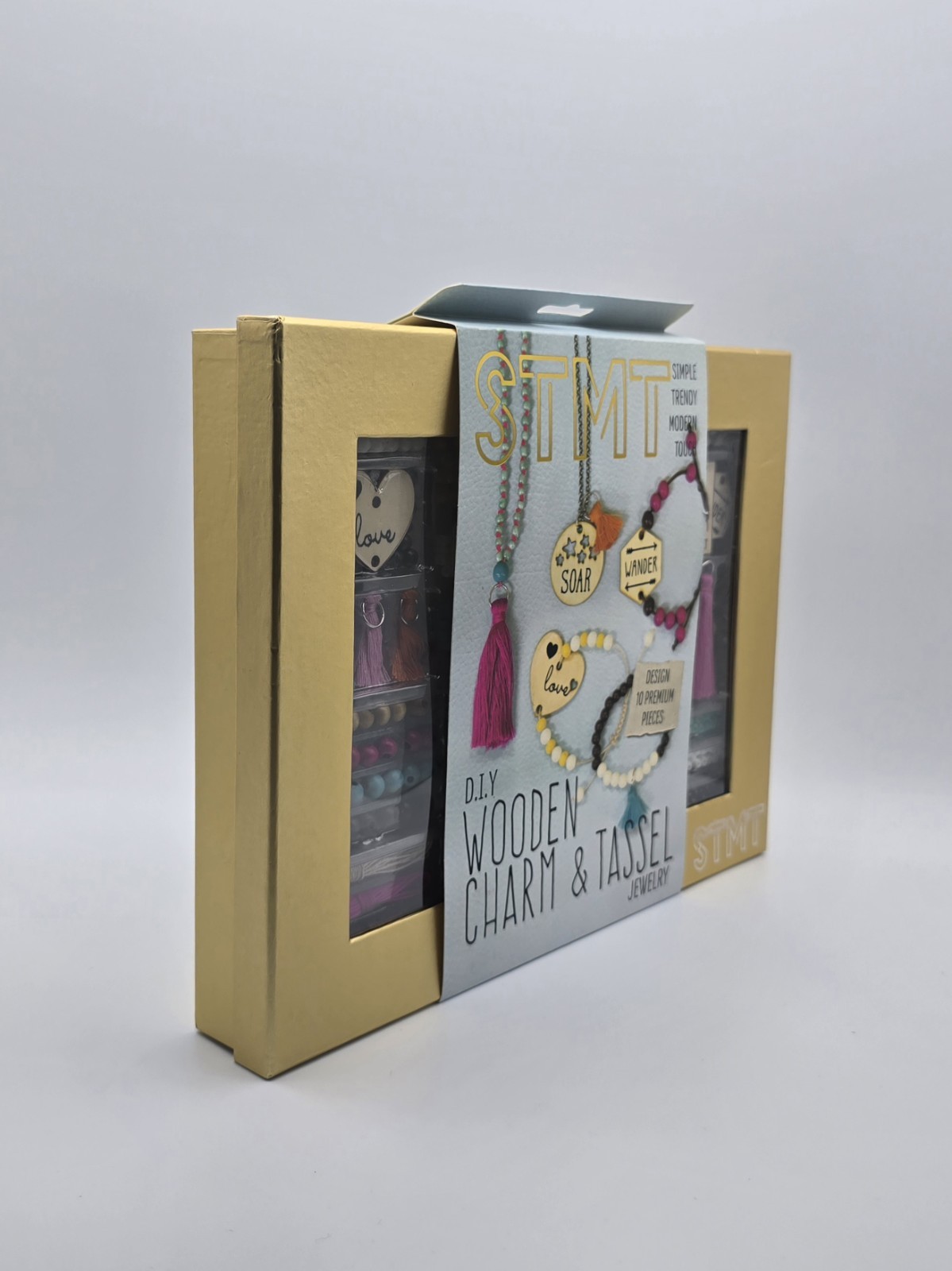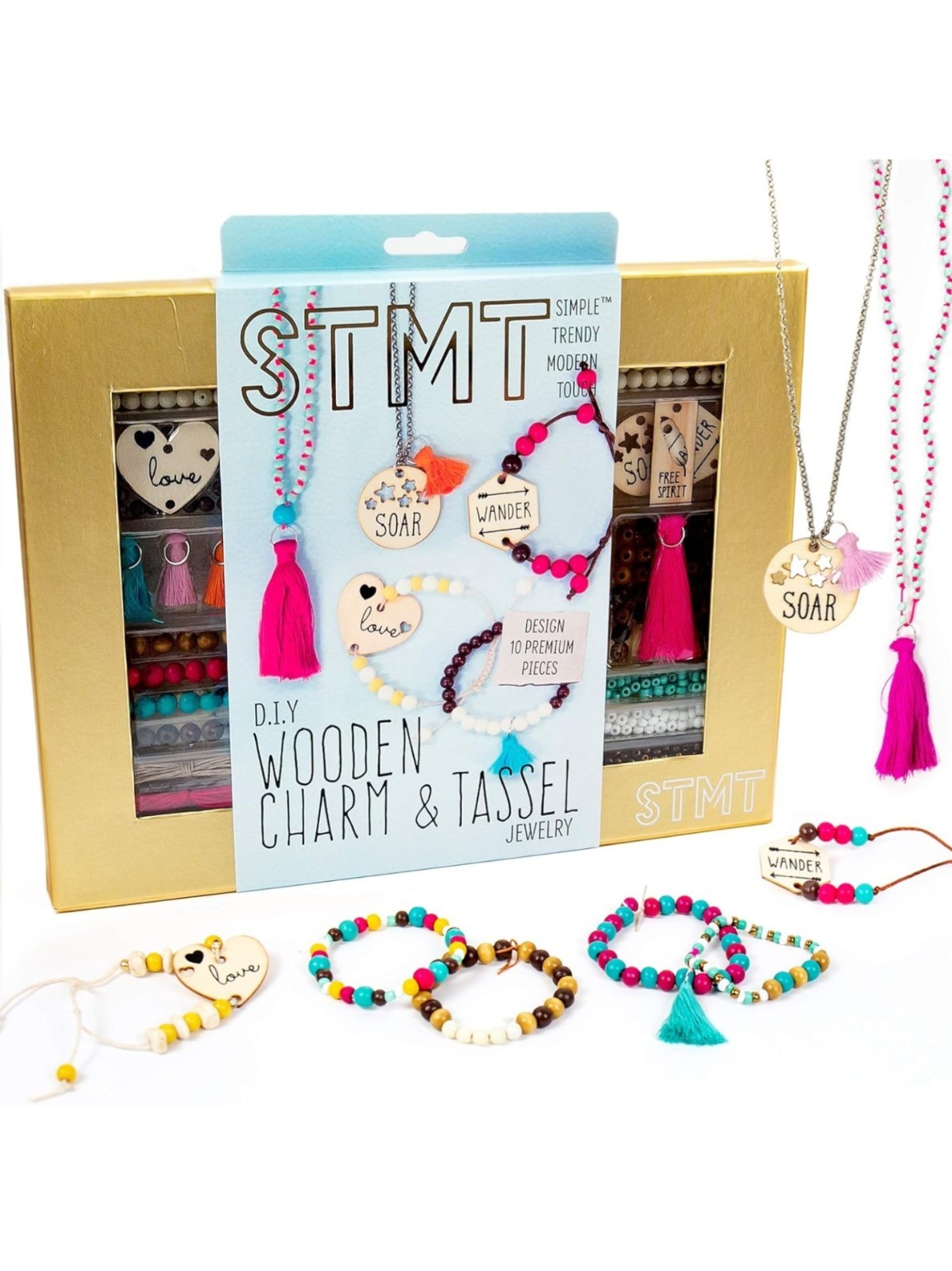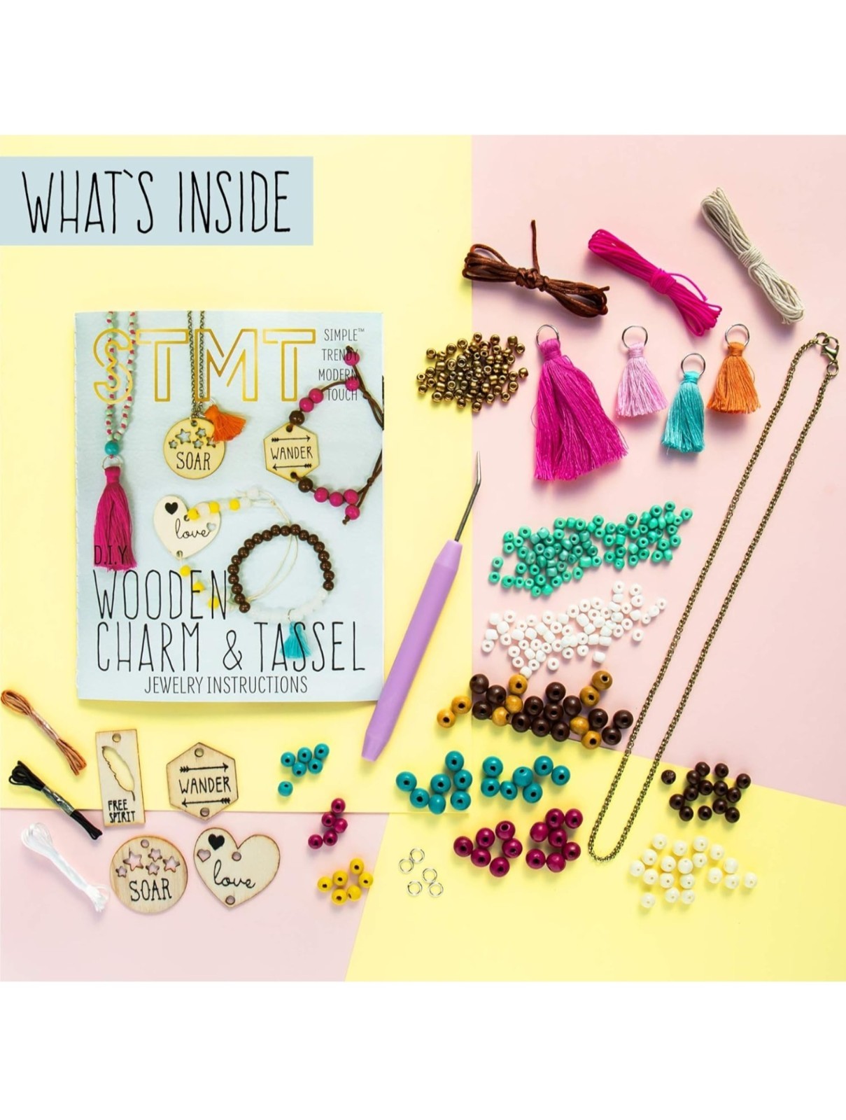 STMT DIY Wooden Charm Tassel Jewelry Art Craft 10P. Making Kit for Teens NIB