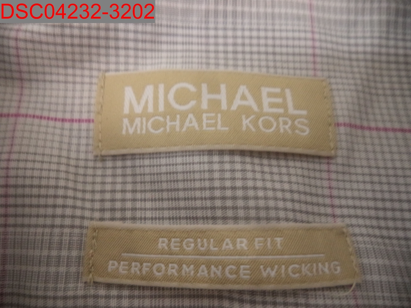 Stain, Michael Kors Men's Grey Checkered Performance Wicking Shirt, 16.5 32/33