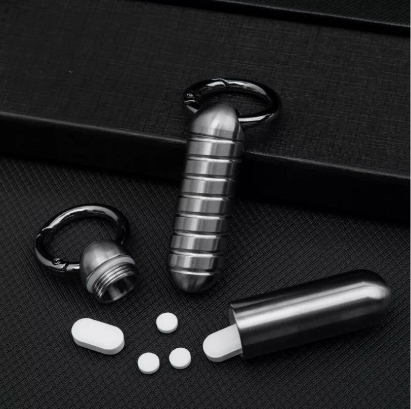 1 Titanium Pill Case Portable Keychain Waterproof Pill Holder Container Organize