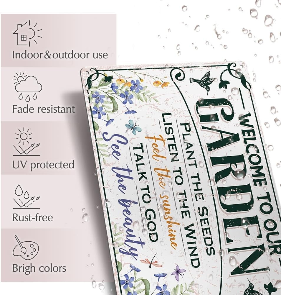 Welcome To Our Garden Metal Sign 12x8 Outside