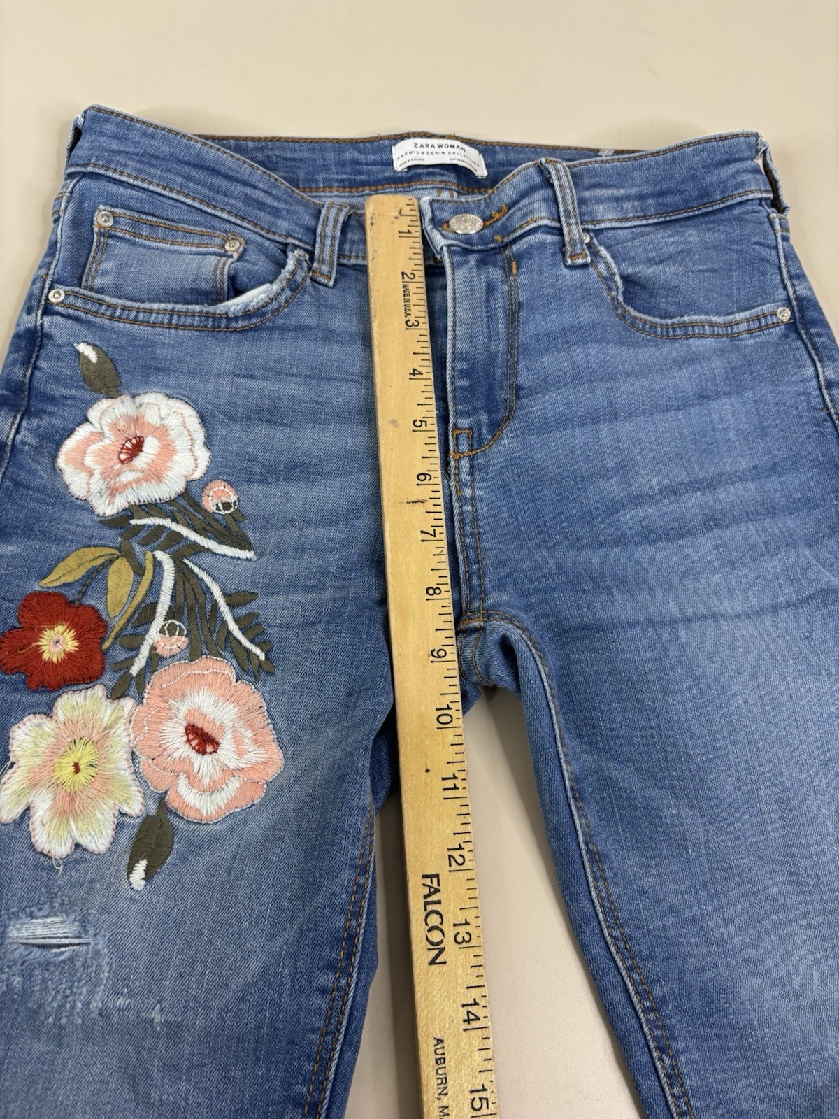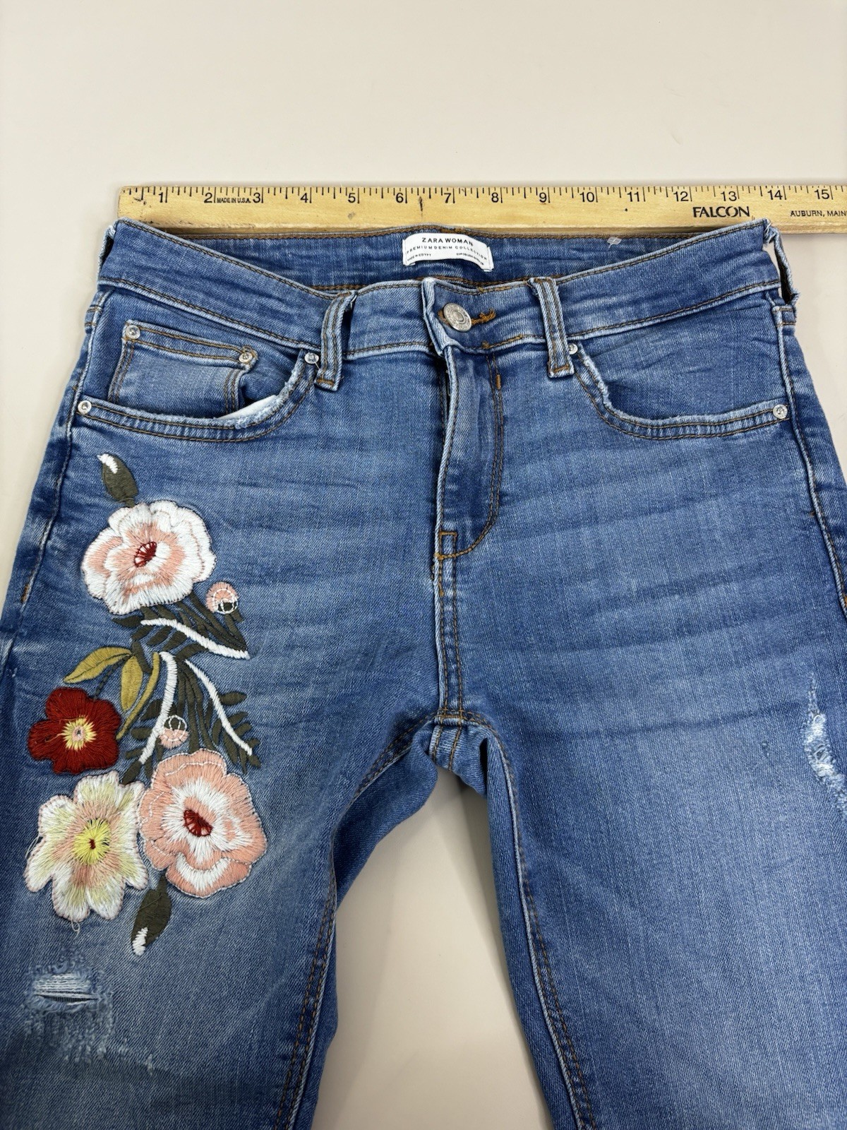 как выглядит Zara Women Sz 6 Actual 28x26.5 Embroidered Floral Skinny Jeans EUC фото
