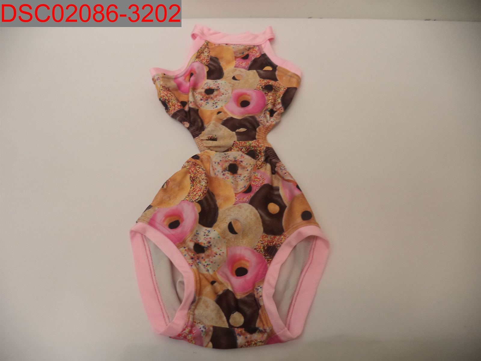 Girls Dount Print One Piece Sleeveless Halter Cutouts Backless Leotard Dance 6