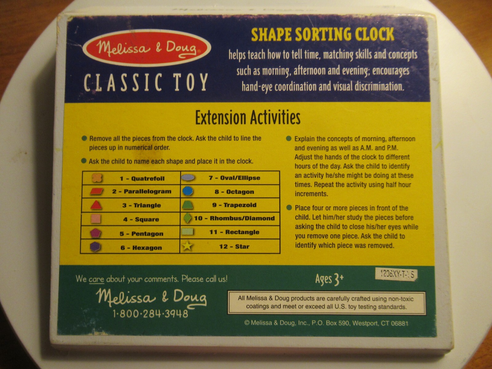 Melissa Doug Shape Sorting Clock Wooden Educational Toy 3