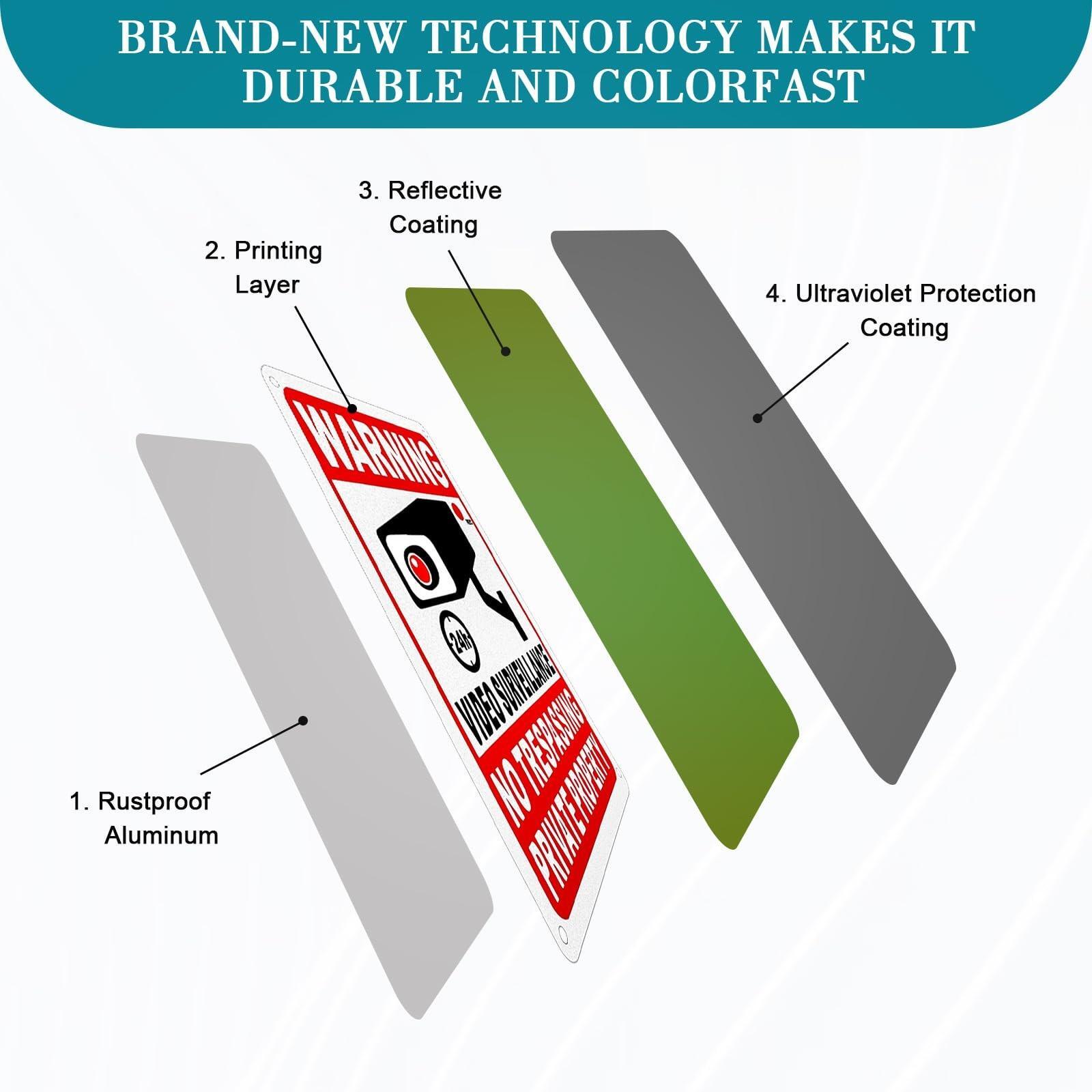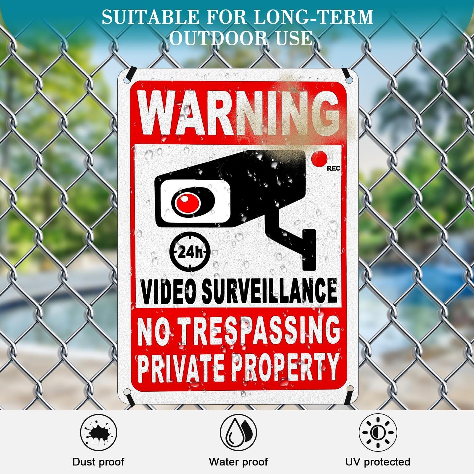 4-pack Private Property No Trespassing Signs,10x7 Inch 24 Hour Video Surveillanc