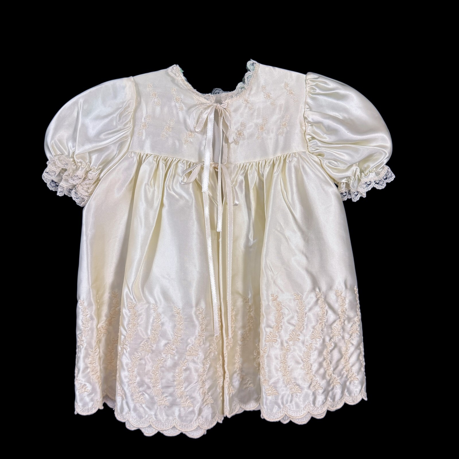Baby Christening Dress Gown Ivory Satin Wedding Vintage 1970s