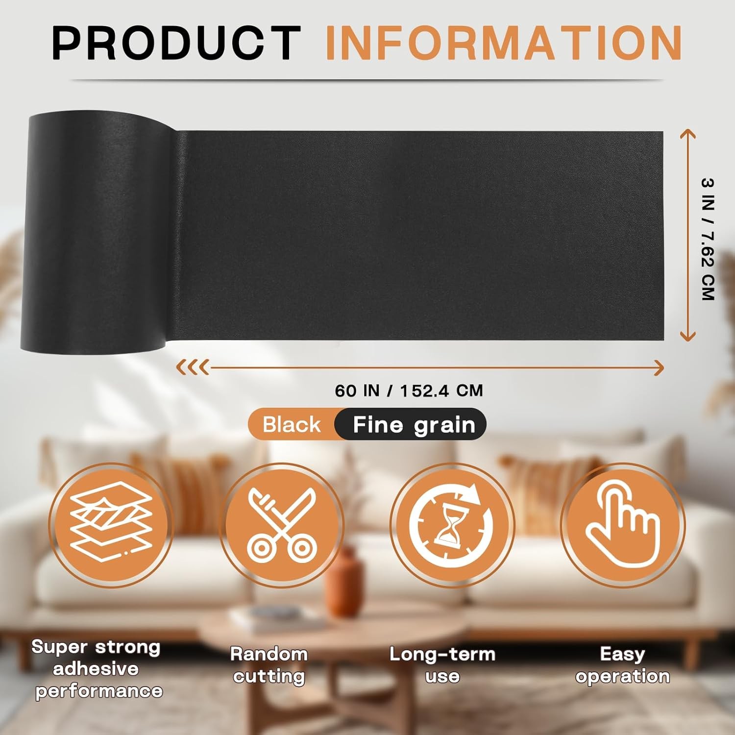 3x60 Leather Repair Patch Self Adhesive Tape for Couch, Car, Furniture