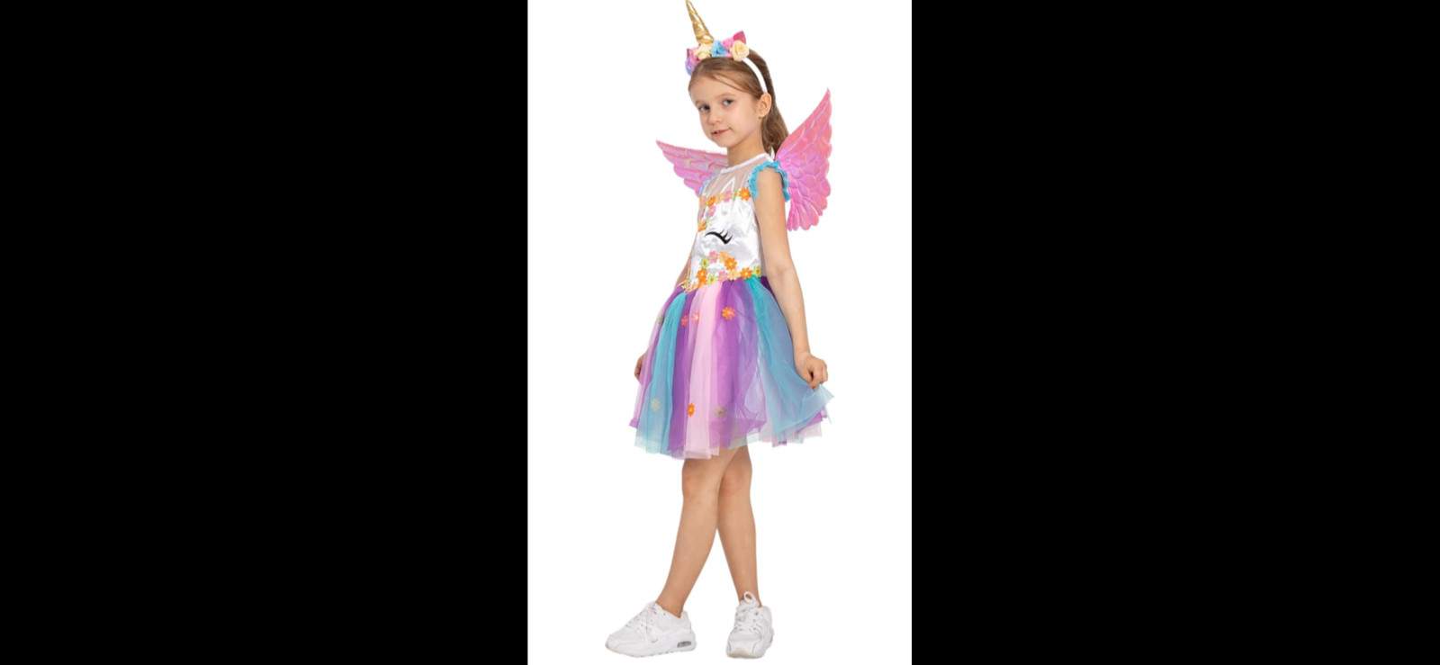 как выглядит Girls Unicorn Dress with Headband Wings for Kids Toddlers Halloween Costume Prin фото