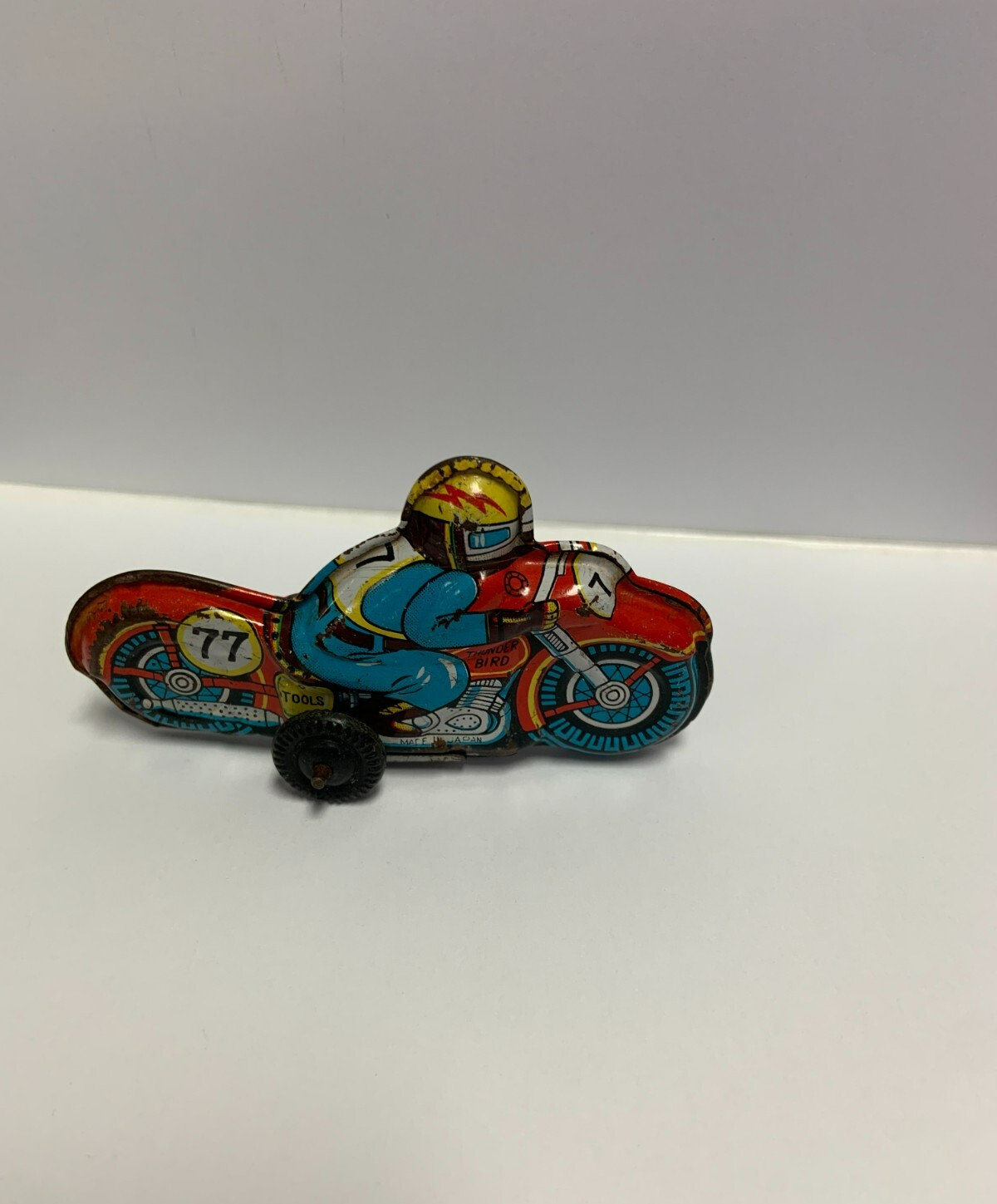 Vintage Modern Toys Japan Pressed Tin Toy Motorcycle Thunder Bird Tools 77