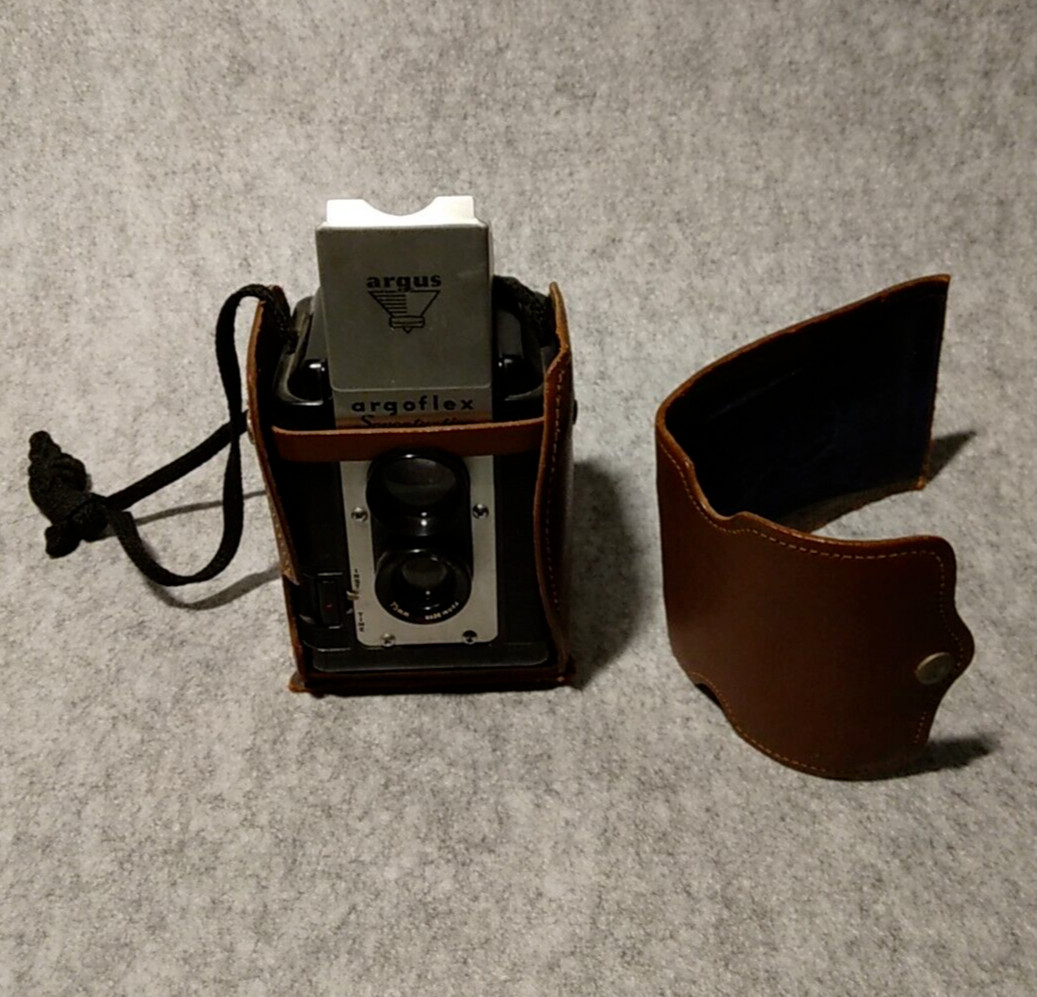VINTAGE ARGUS ArgoFlex 75mm BOX CAMERA WITH LEATHER STRAP CASE