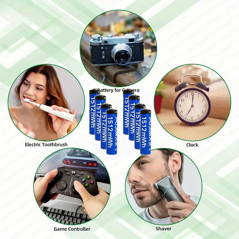 1.5V AAA PUJIMAX 1512mWh Rechargeable Batteries Lithium 8 Pack with Fast Charger