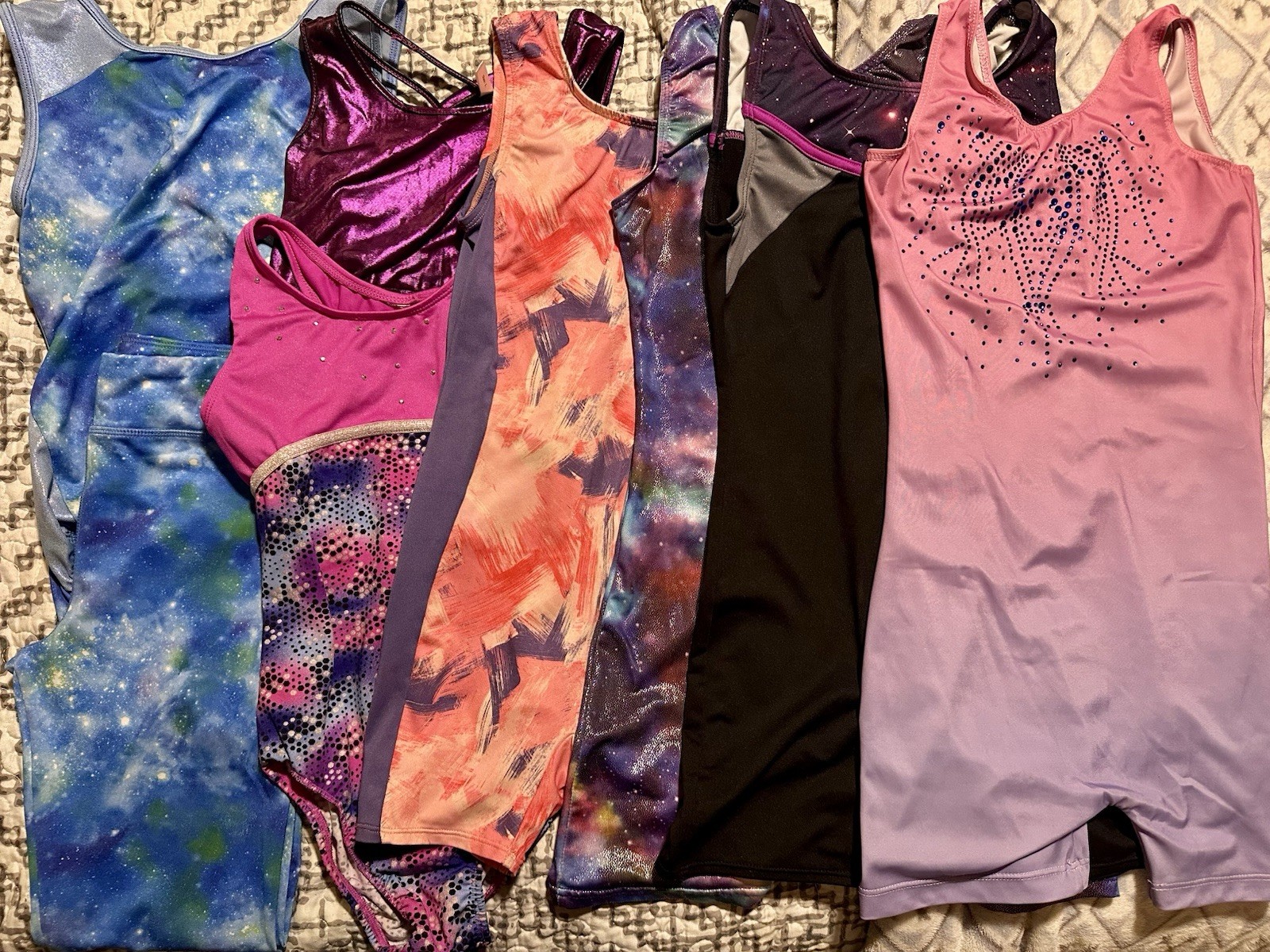 как выглядит Girls Assorted Gymnastics Leotards Set, Colorful Designs фото
