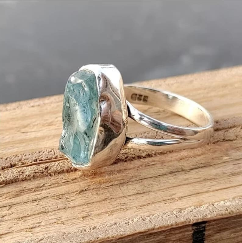 Raw Aquamarine Ring Statement Ring Solid 925 Silver Ring Handmade Women Ring