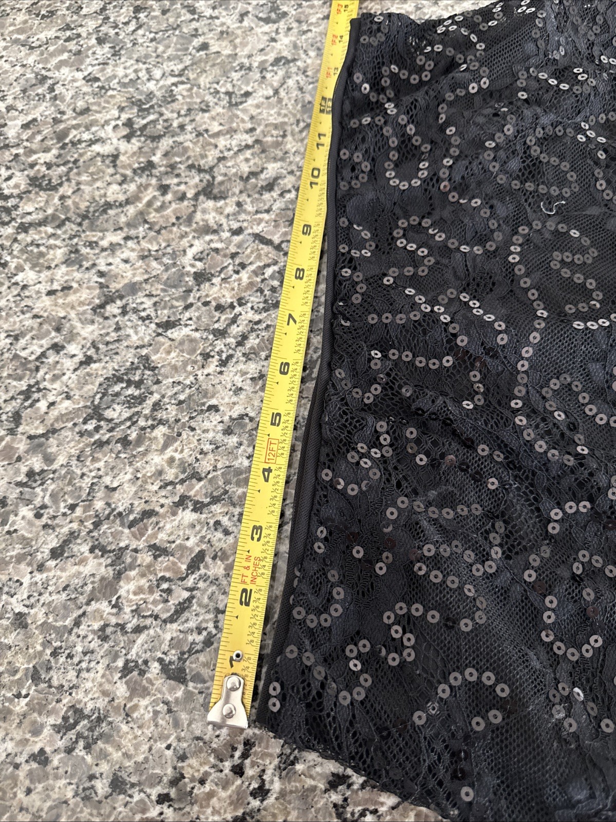 NEW-Wild Fable Sequin Black Lace Midi Skirt Size Small