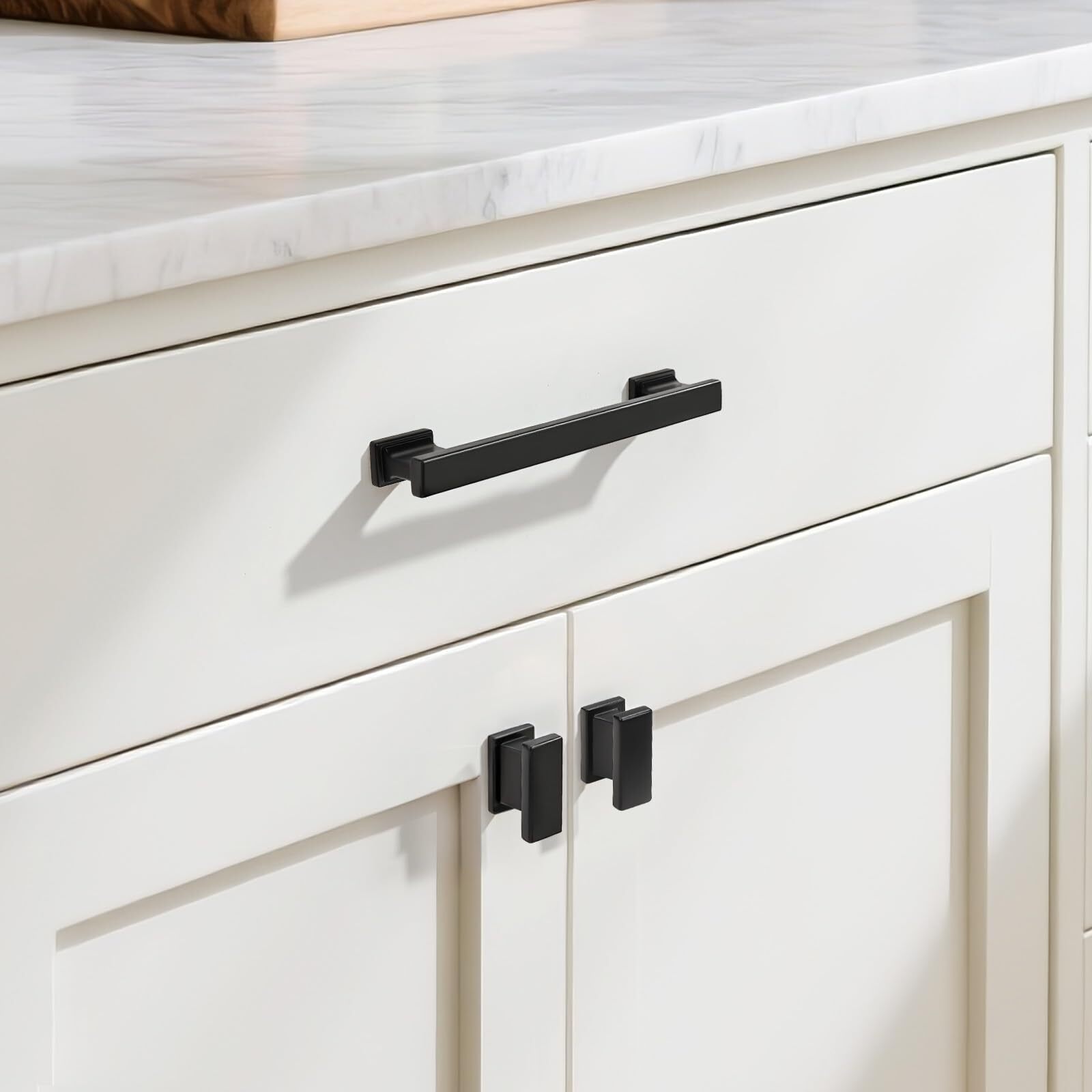 6 Pack Matte Black Solid Cabinet Pulls 5 Inch128mm Hole Center Kitchen Cabine...