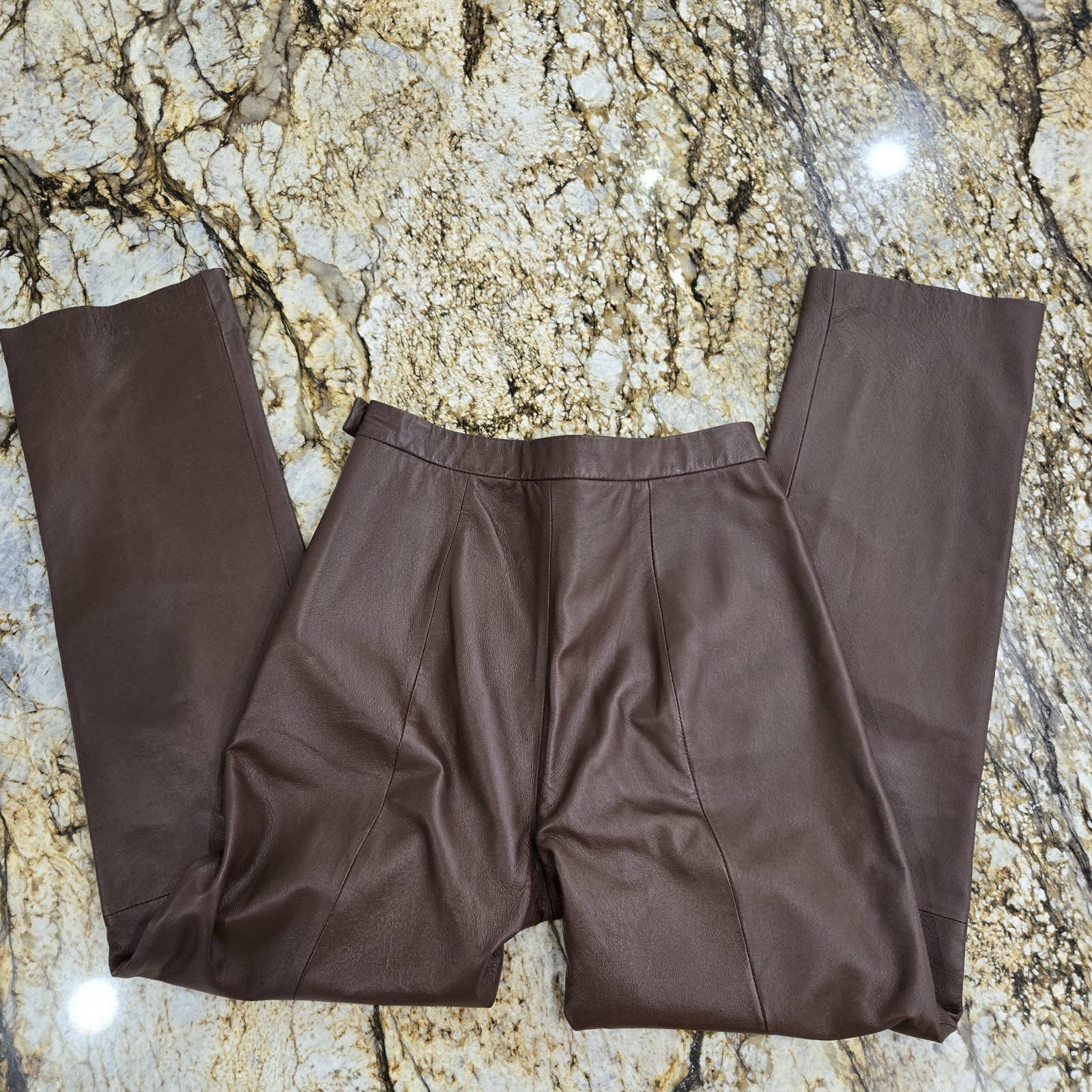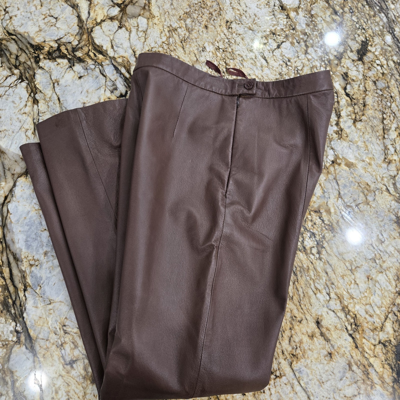 как выглядит Vintage CLIO Leather Pants Size 8 Brown Lined High Waist Side Zip фото