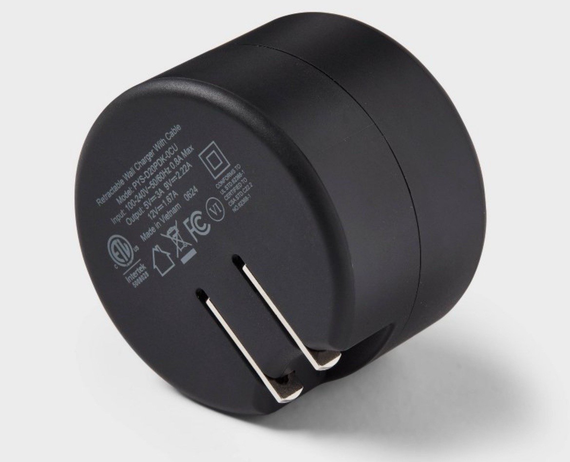 как выглядит Heyday USB-C Wall Charger  3ft Retractable Cord  Black фото