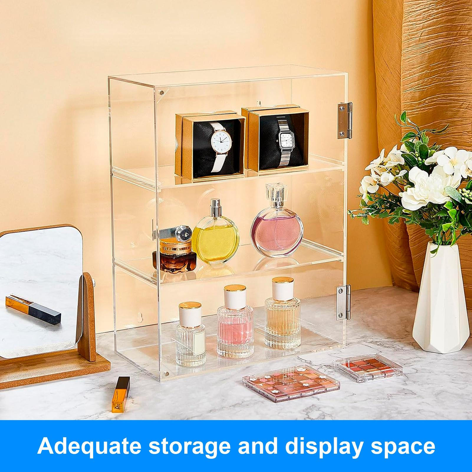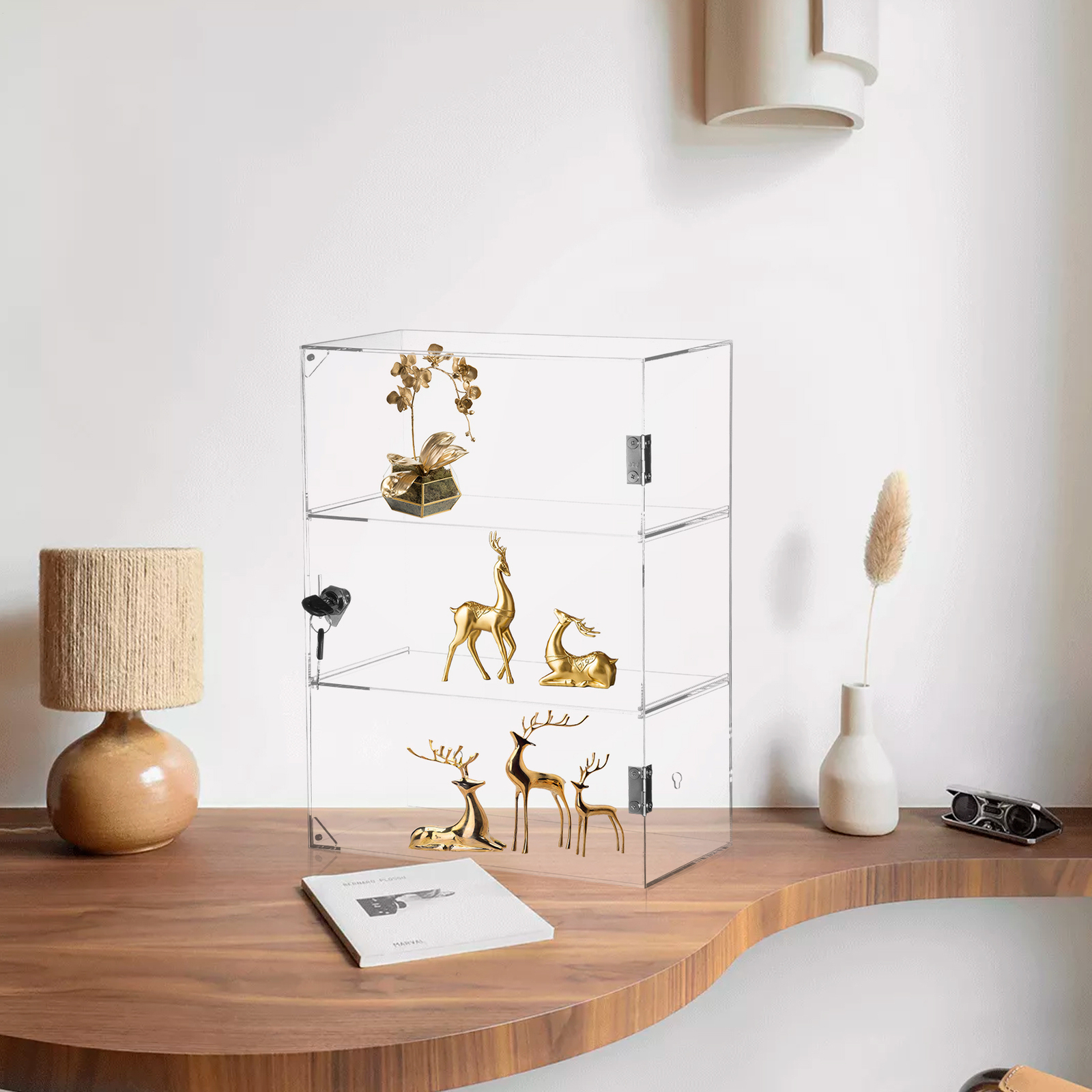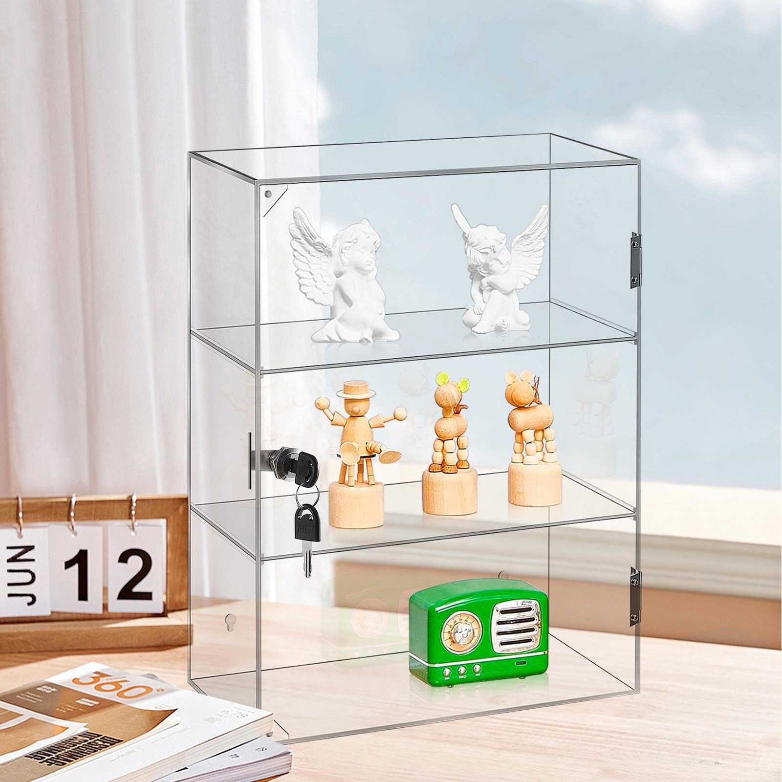 Clear Acrylic Display Case Countertop Box Shelves Showcase With Lock Dustproof