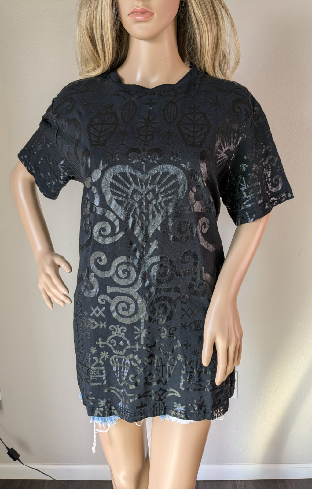 KILLSTAR Shirt Women's Large Black Voodoo T-Shirt All-Over-Print Short Sleeve