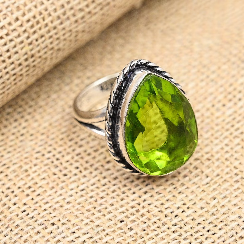 как выглядит Peridot Solid 925 Sterling Silver Beautiful Statement Lovely Ring All Size M1257 фото