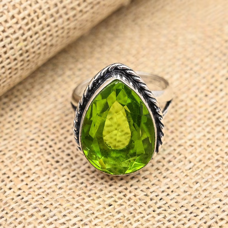 Peridot Solid 925 Sterling Silver Beautiful Statement Lovely Ring All Size M1257