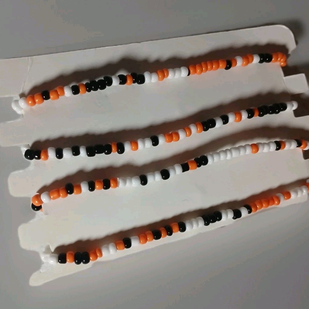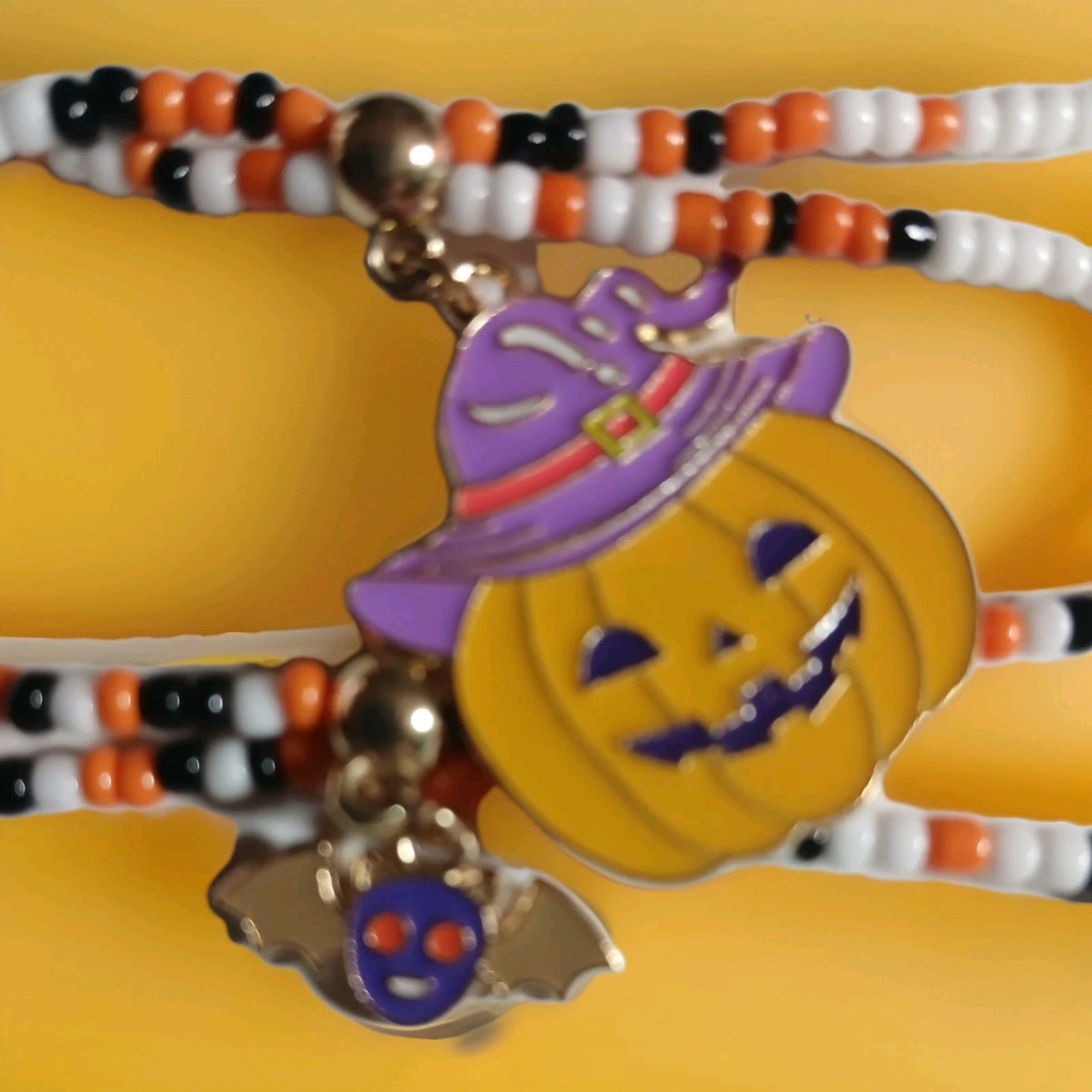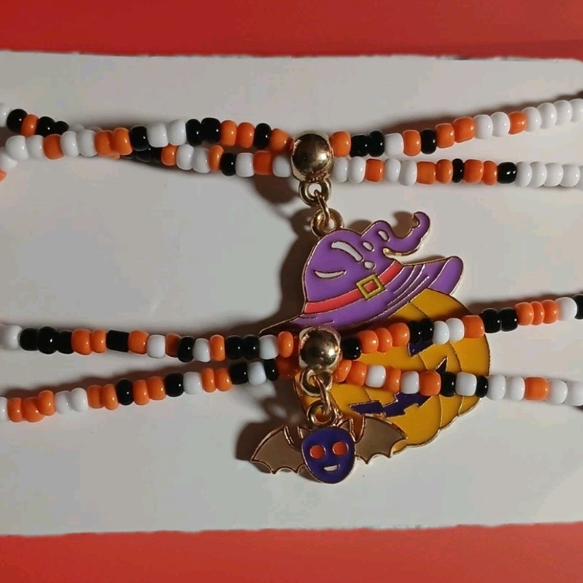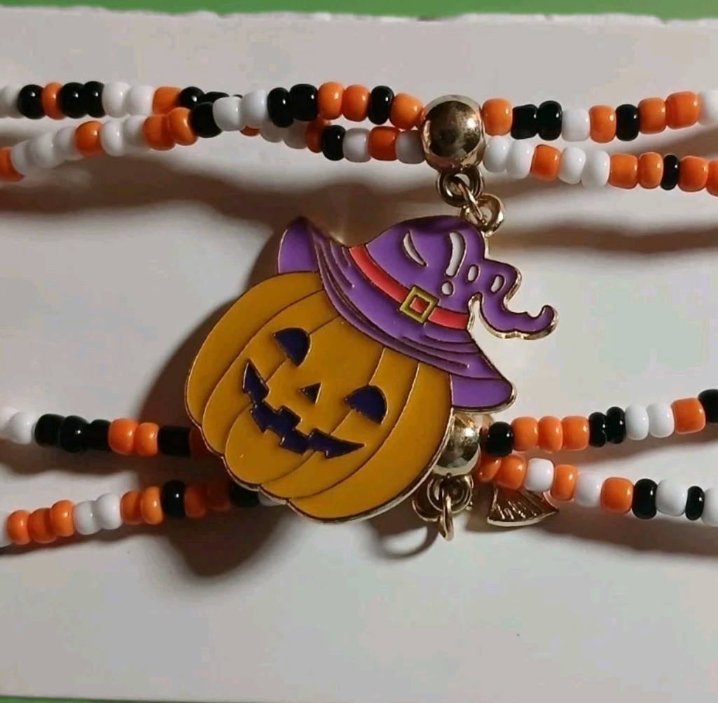как выглядит Festive Halloween Beaded Bracelets, Set Of 2. Big Pumpkin, Bat Colorful, Fun фото