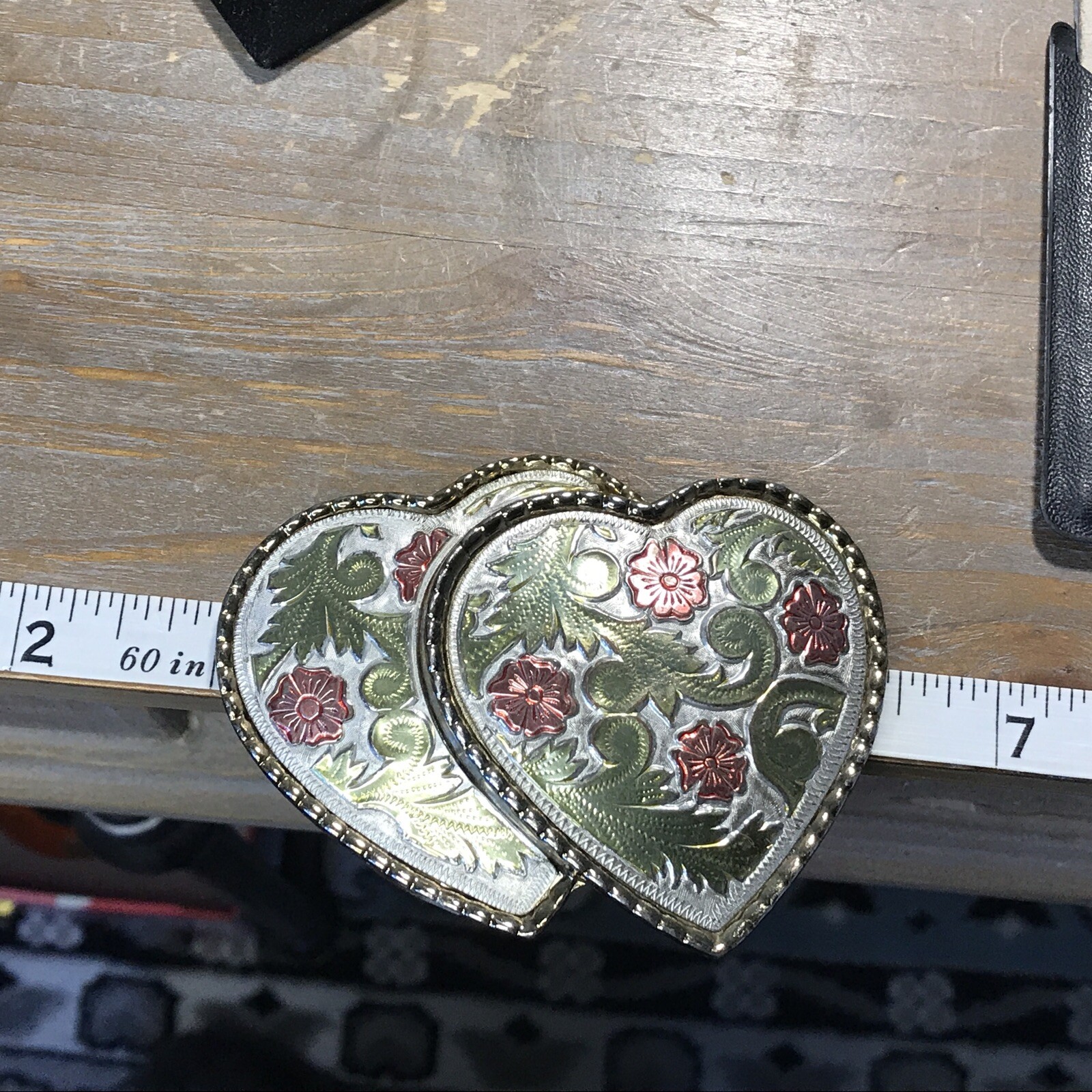 Double Heart Buckle Pink Flowers Gold Leaves W Brand USA Made Great B77