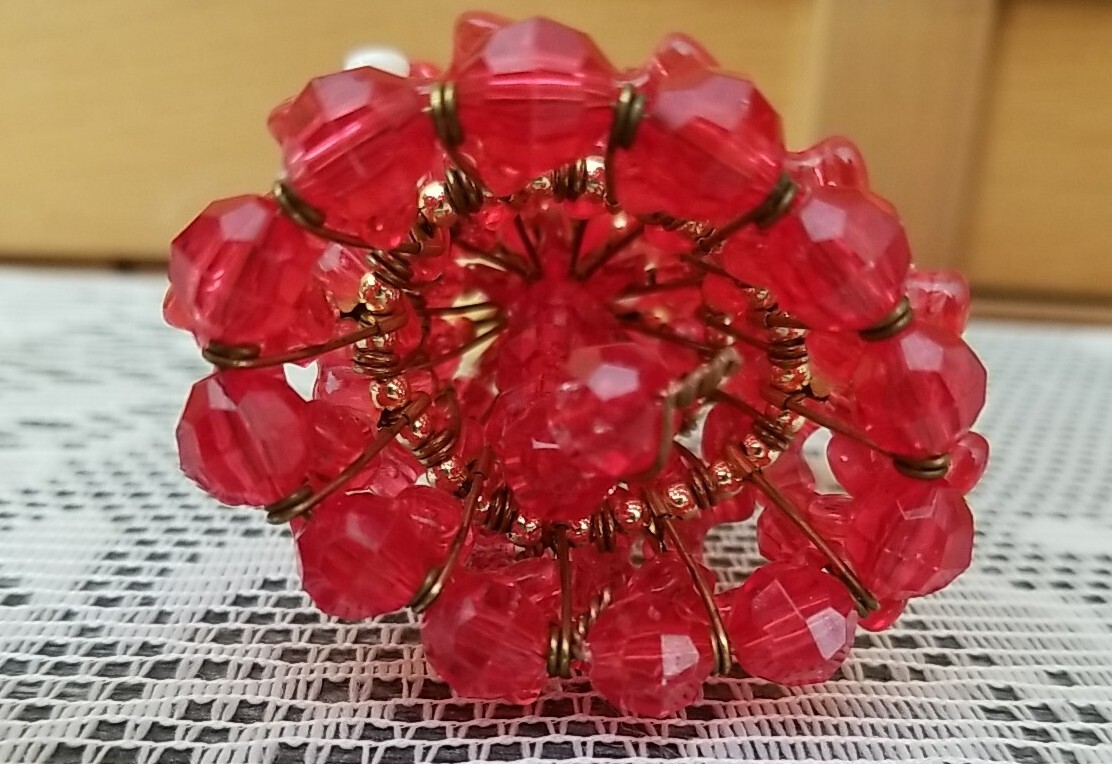 Vintage 50s Beaded Safety Pin Craft Doll Red Dress Kitsch Retro