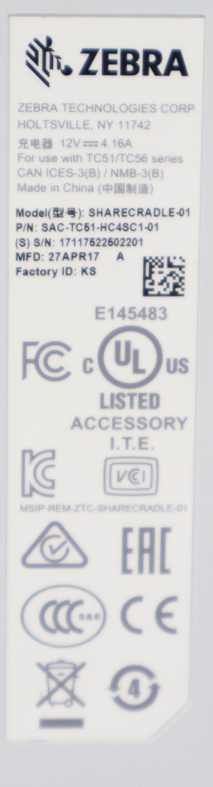 Zebra SHARECRADLE-01 4-Slot Battery Charger SAC-TC51-4SCHG1-01 TC51 TC52 TC56