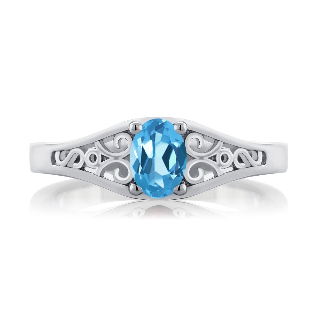 1.00 Cttw Blue Topaz Ring For Women 925 Sterling Silver 7X5MM Gemstone