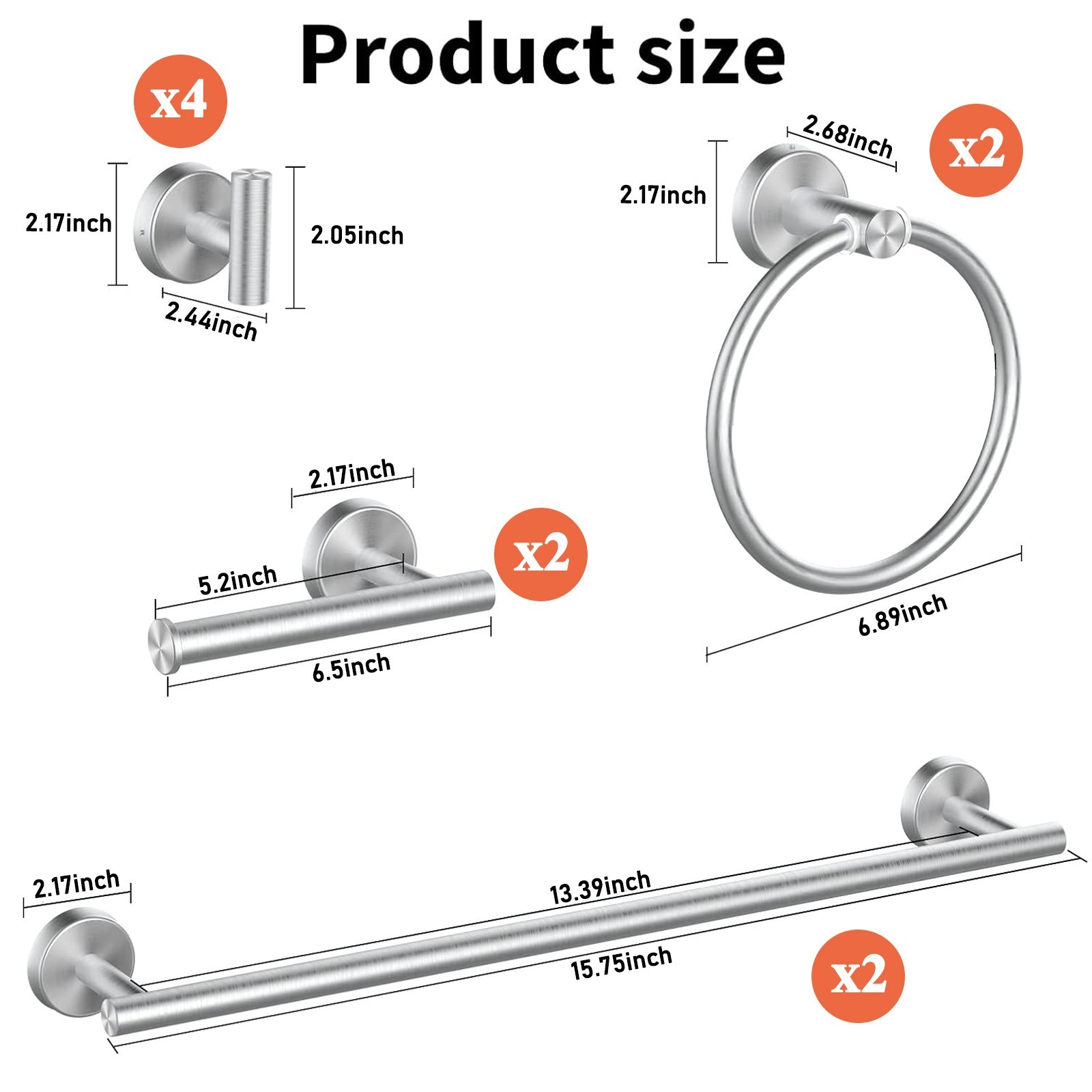 Set Includes: Towel Hook, Towel Rack, Towel Rail, Towel Ring, Towel Shelf, Towel Stand