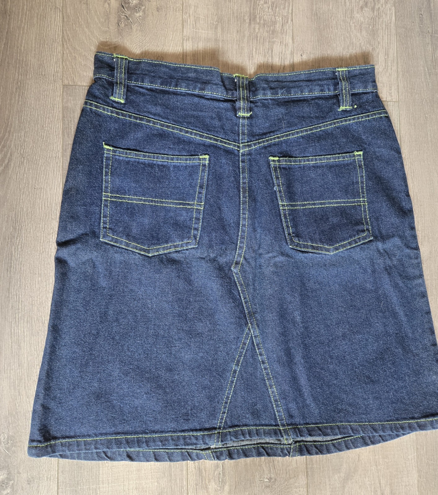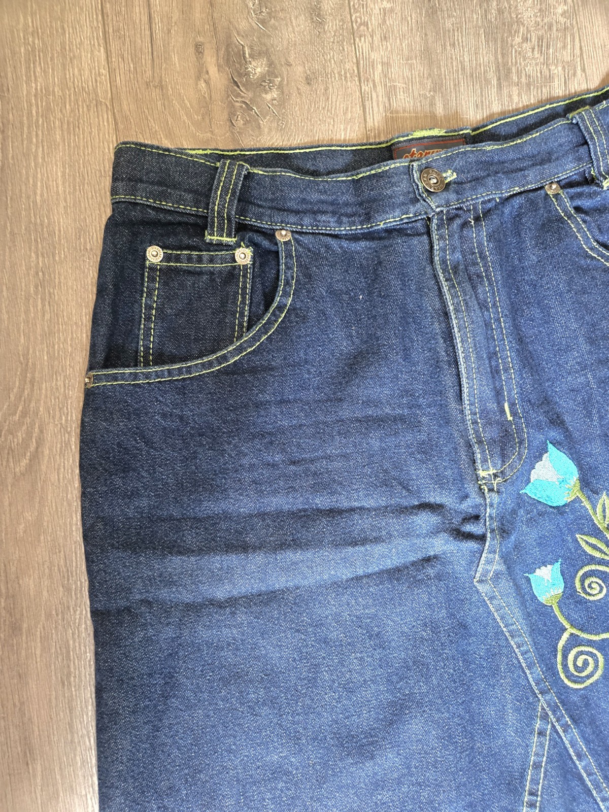 как выглядит VTG 90S Denim Skirt Embroidered Floral Contrast Stitching Dark Blue Size 9/10 фото