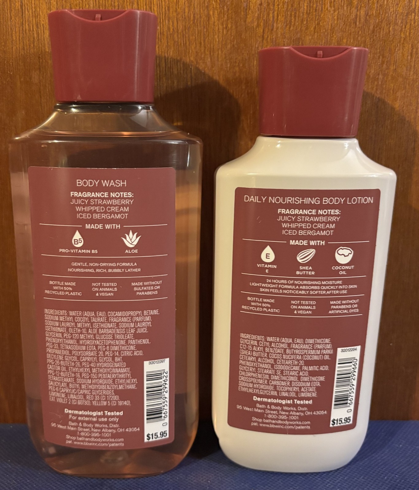 как выглядит Bath Body Works STRAWBERRY SNOWFLAKES 2pc Set - Body Wash Body Lotion - NEW фото