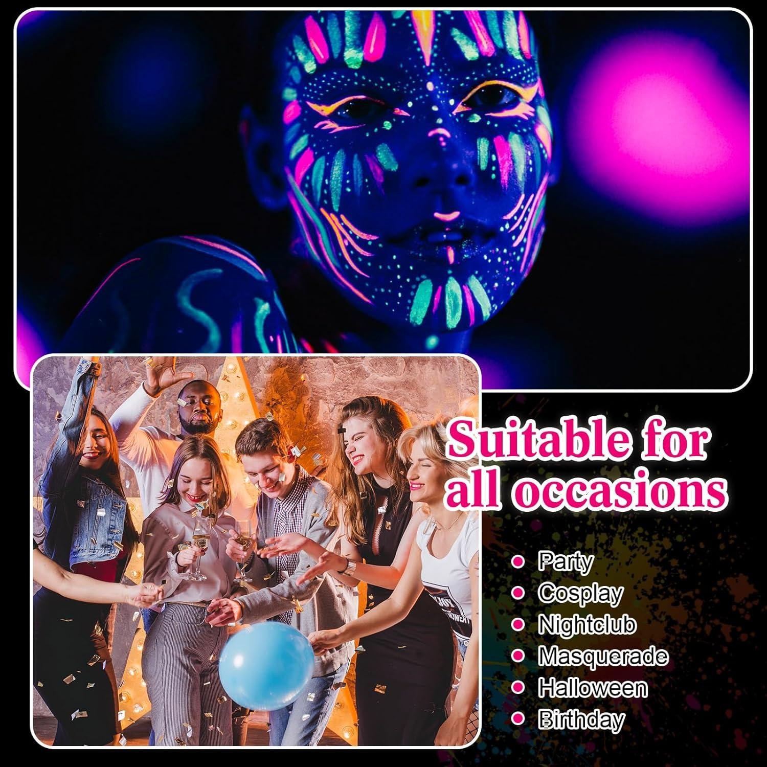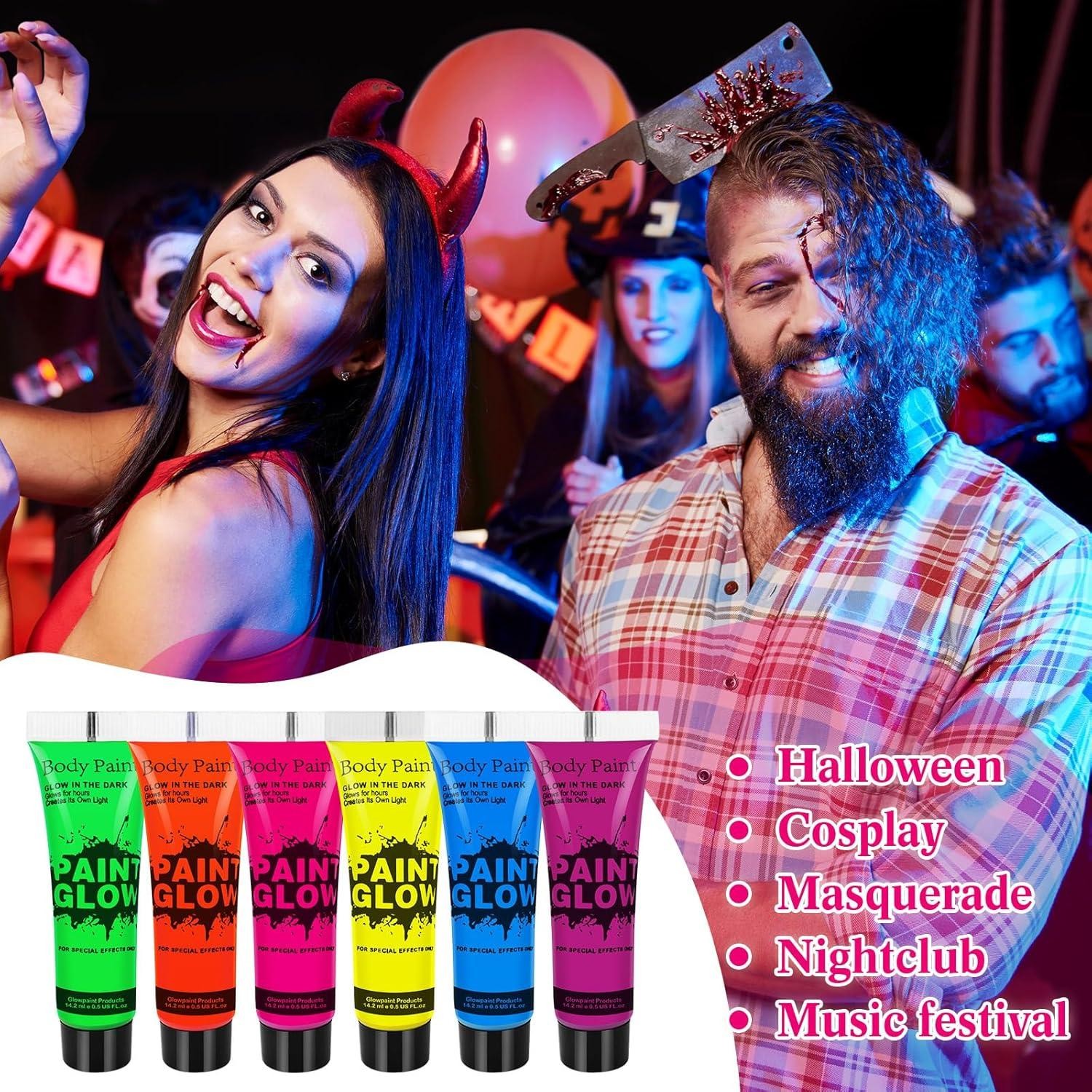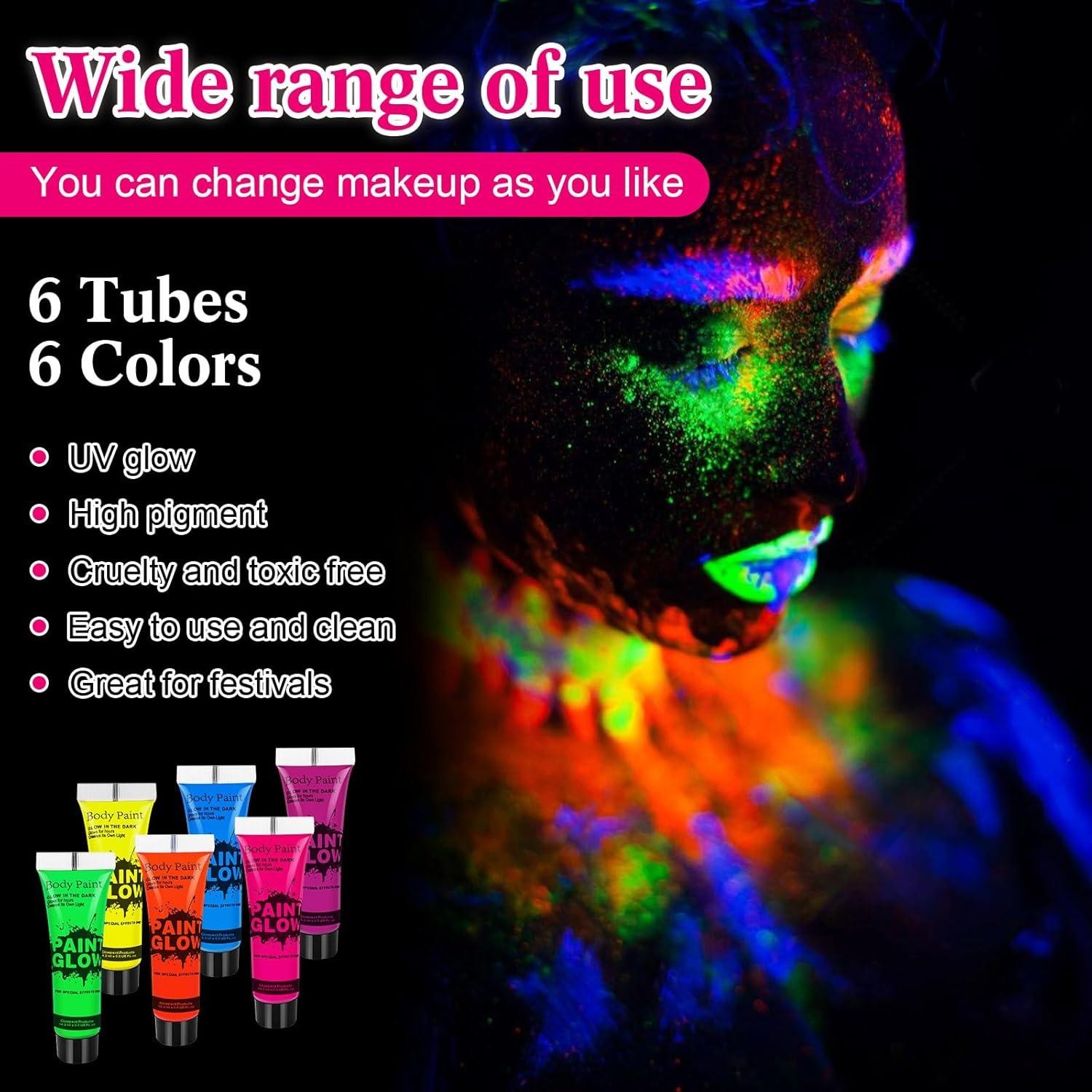 6 Color Glow in the Dark Face Paint, Uv Blacklight Neon Hot Pink Face Body Paint