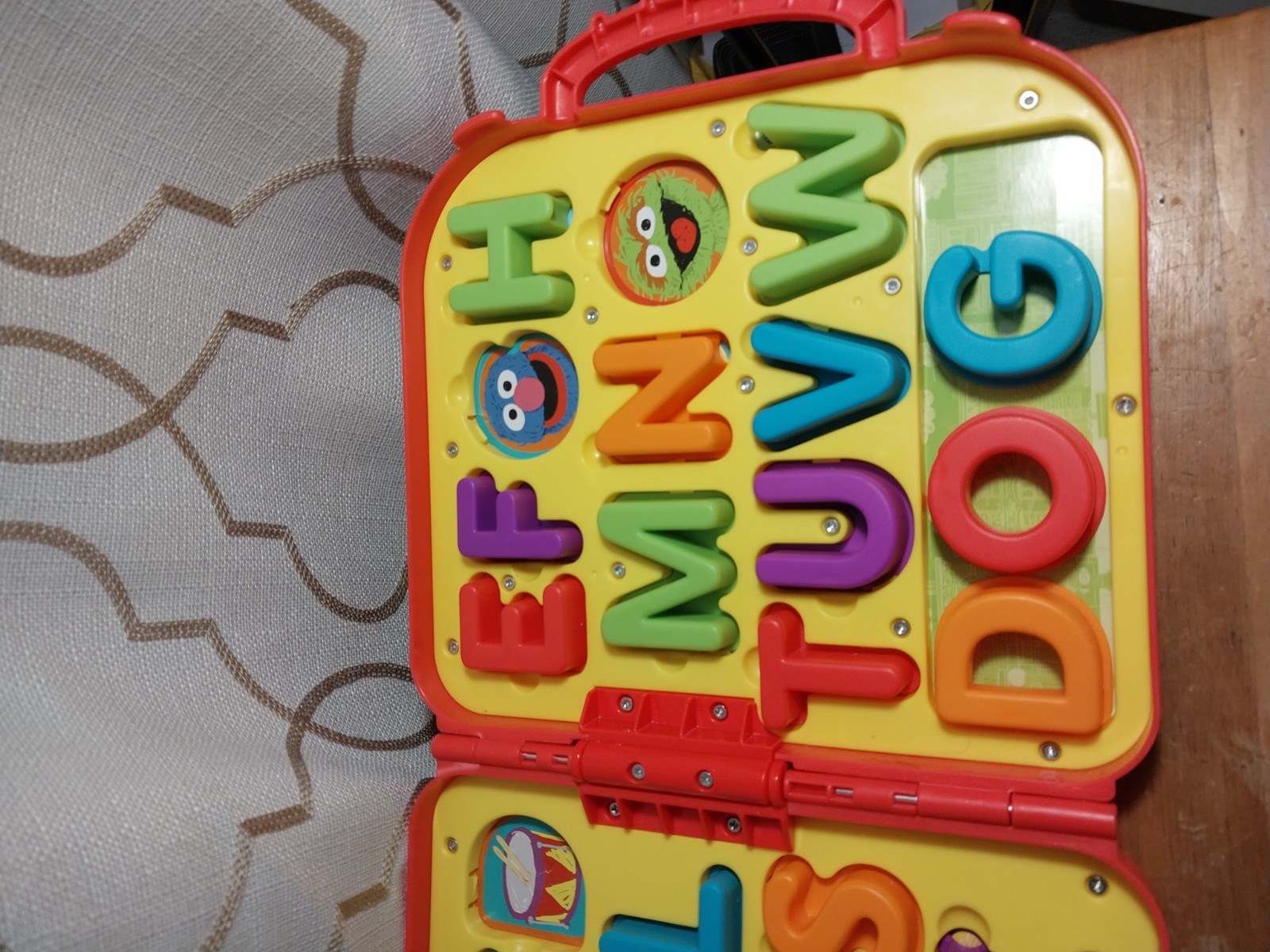 как выглядит Red Sesame Street Elmo On The Go ABC Box Carry Along Handles Complete Set Hasbro фото