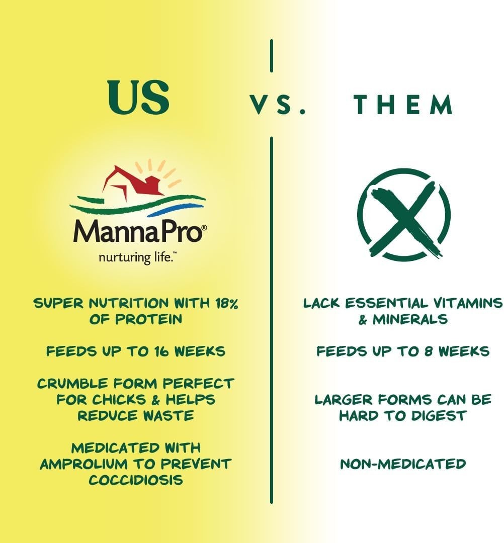 Included Components: Manna Pro Medicated Chick Starter Crumbles, 5 Lb