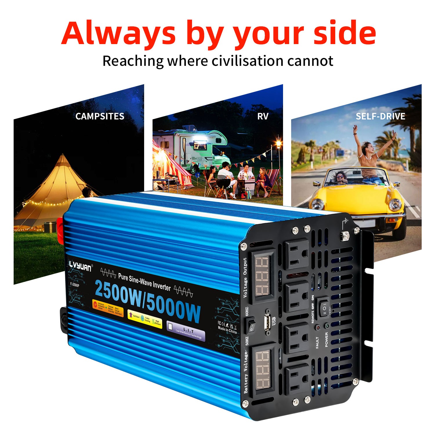 5000w 4000w 3000w Power Inverter Pure Sine Wave USB 12V 24V-110V 4AC 50Hz/60Hz