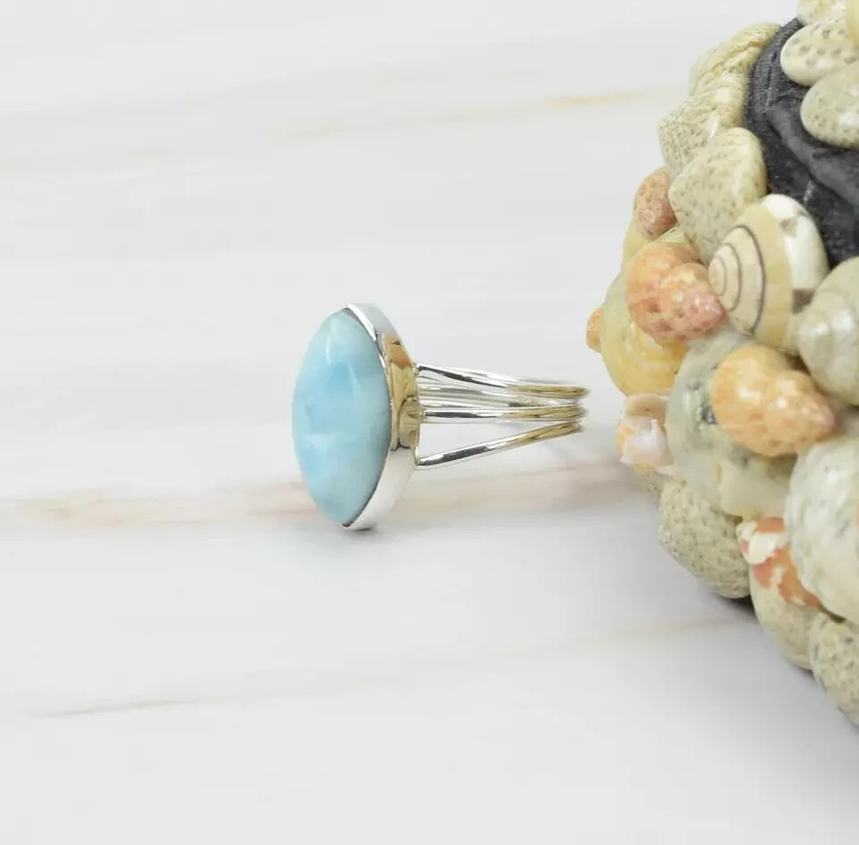 Beautiful Larimar Gemstone Ring Handmade 925 Sterling Silver Ring All Size R424