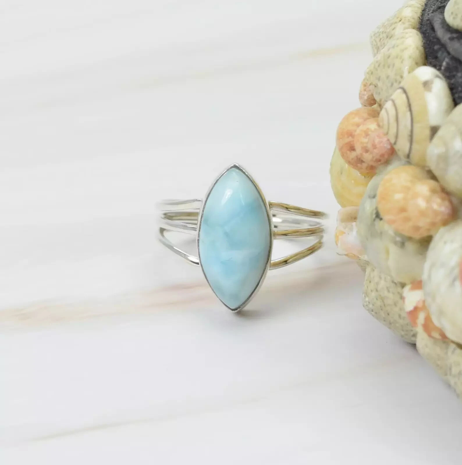 как выглядит Beautiful Larimar Gemstone Ring Handmade 925 Sterling Silver Ring All Size R424 фото