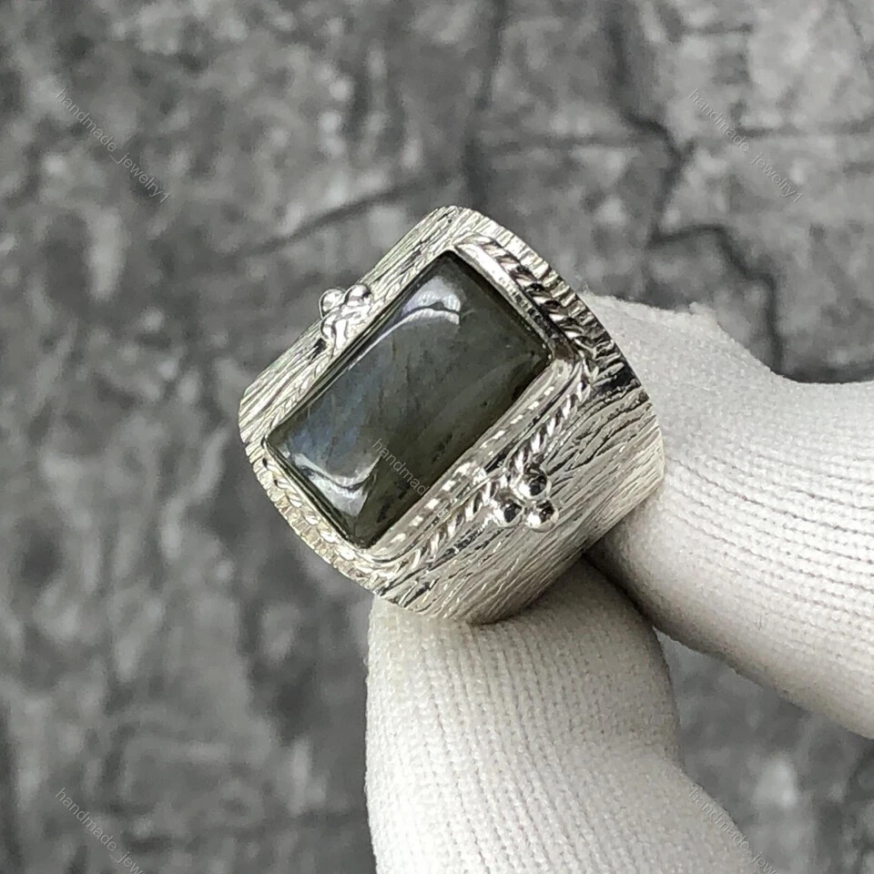как выглядит Labradorite Gemstone Handmade Ring 925 Sterling Silver Statement Gift Ring R338 фото