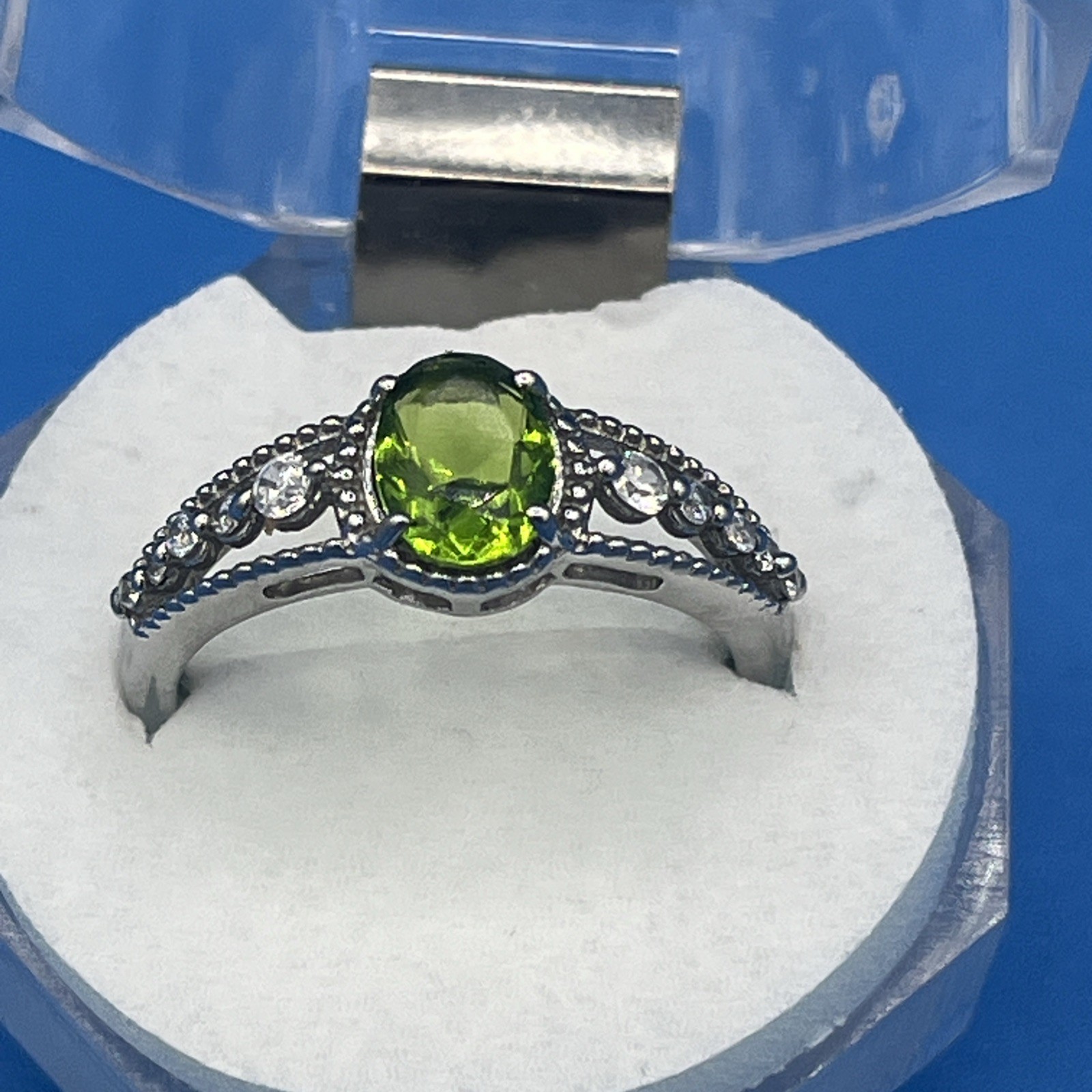 как выглядит 925 Sterling Silver Ring Green Gemstone Emerald Cut w/ Clear Accent Stones фото