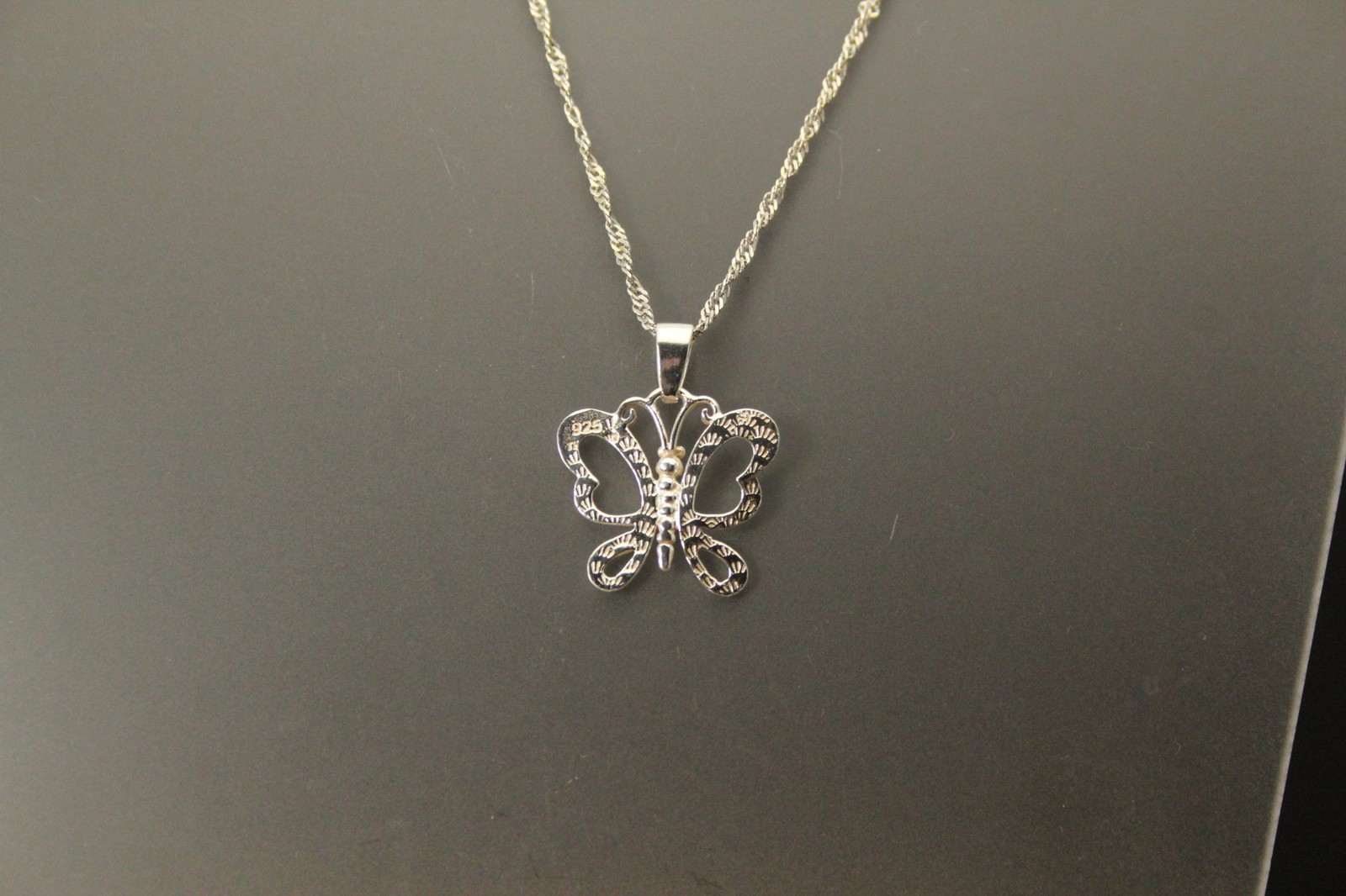 925 Sterling Silver Butterfly Pendant 18 Long Singapore Chain 4.5g NEC5791